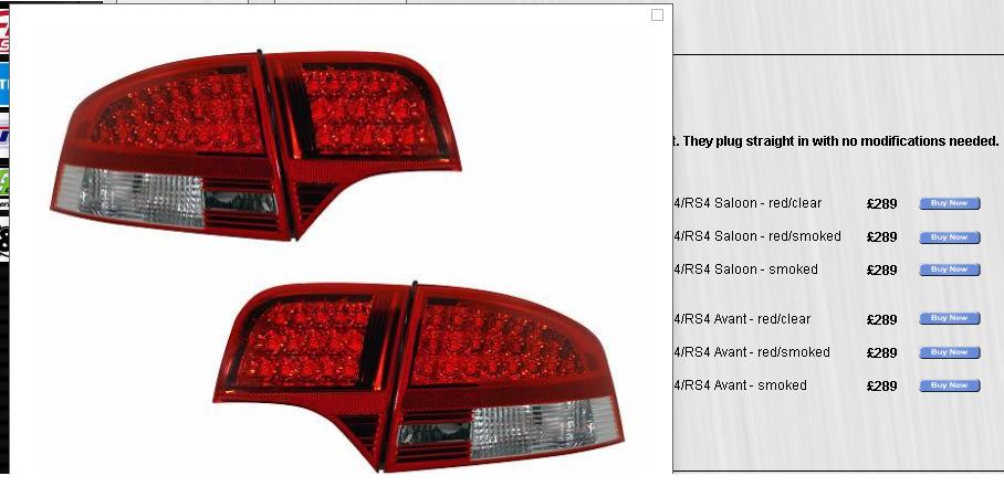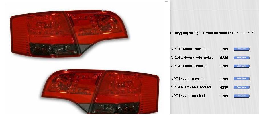 I know LED rear lamps have been bought up before but has anyone seen the offerings in the back of this months Audi Driver magazine? They look the real deal - offering red/clear or red/red tint options, direct replacement with no rebulbing/wiring or squeezing and bodging £290 from memory but can remember where from....