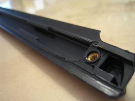 exactly as described, the blade mounting plate is delaminating at the top edge for about 12" from the rear of the door