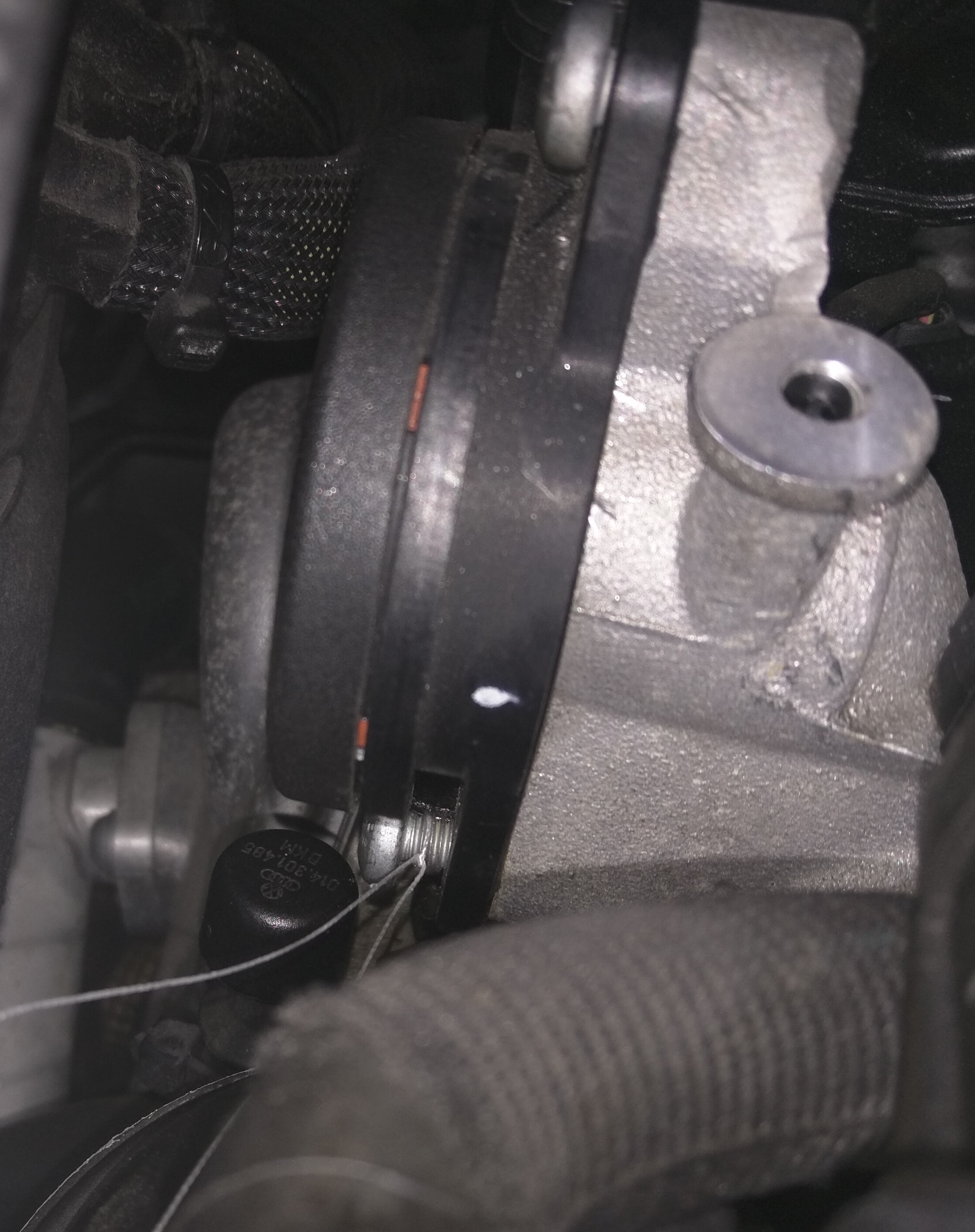 so charged up the old inspection scope today and yeah - the separator is leaking. from the diagram, there appears to be a small hose clamp underneath, and while the bottom bolt is a bugger to get at, I have a low profile wrench that can get in there.