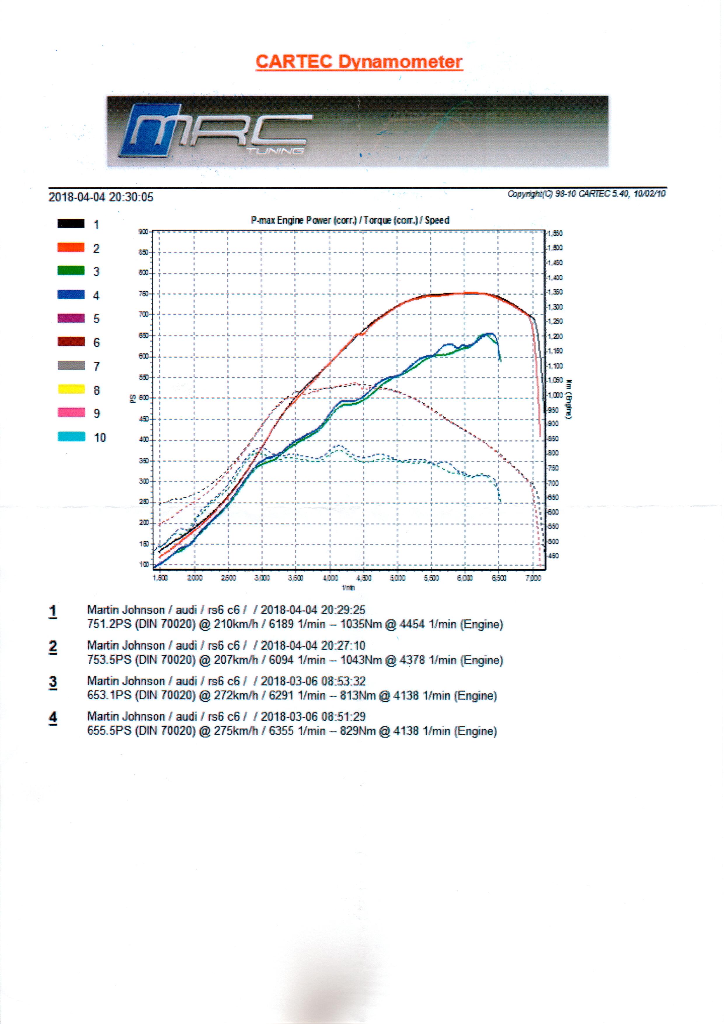 The drive back to Germany was a blast, albeit getting flashed by a few cars at night time as the lights are so bright (illuminating street signs in the day time). Winter tyres still fitted so limited to 240KPH but huge difference to the way the car was before heading to MRC. Previous dyno runs with MTM tune and final runs with MRC are shown in the graph.