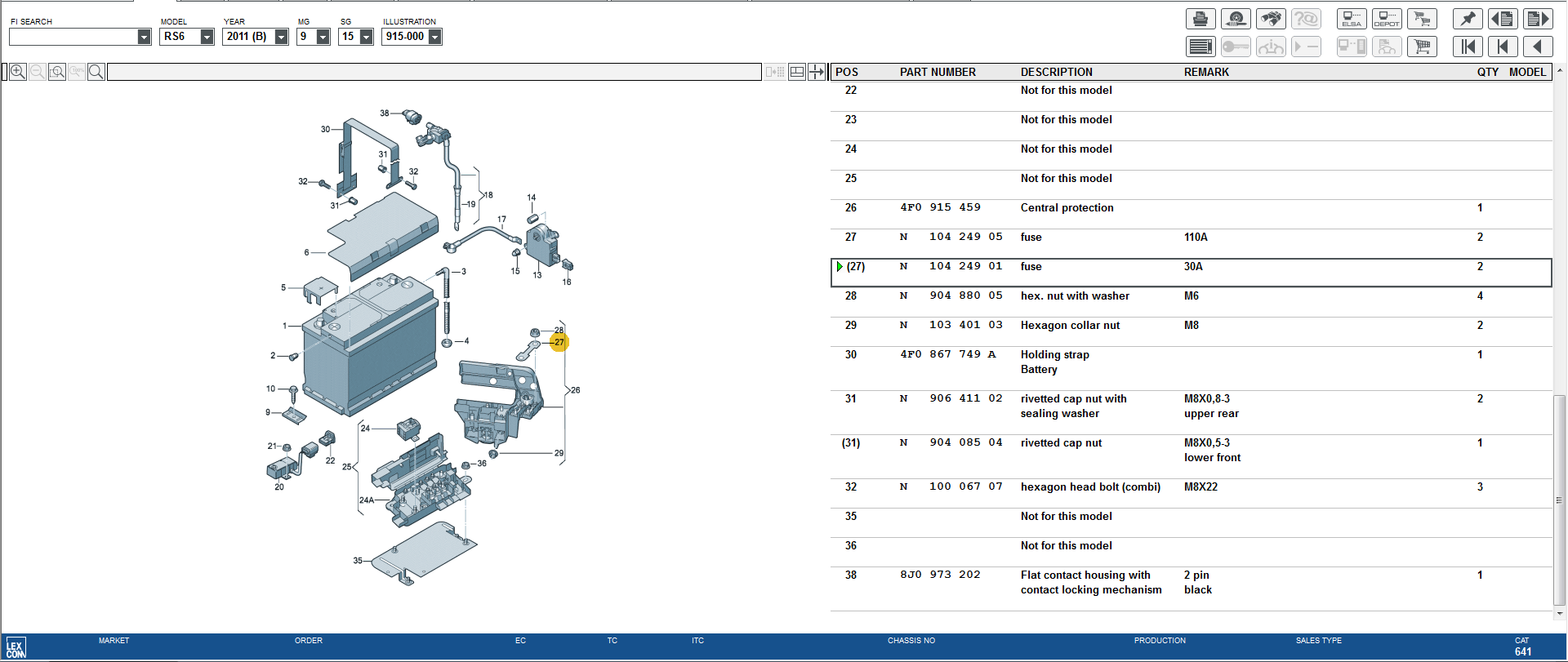 The part number for the 30A fuse is - N 104 249 01