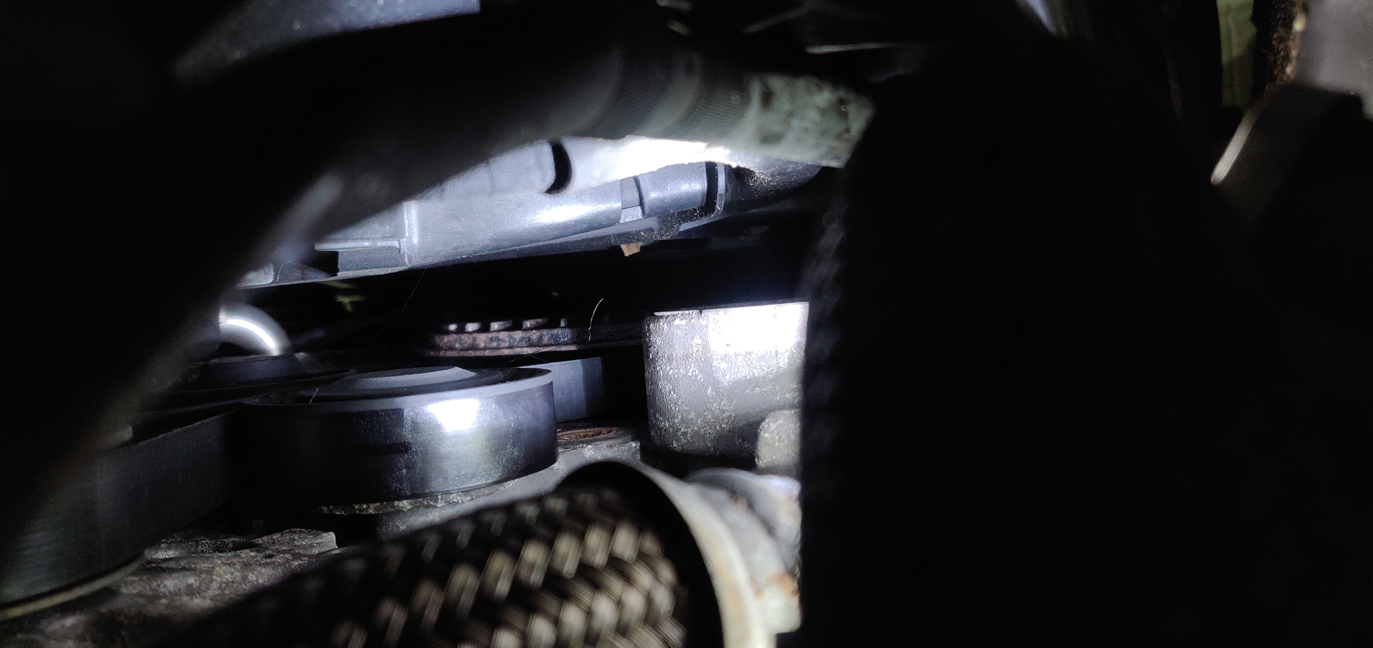 The crank pulley has little protrusions on it and there's a big boss underneath it. I can get a pry bar in there and slowly lever it around clockwise. I gave it a test and it doesn't take much to move as there's no compression with the injectors out, so I don't think I will damage anything.