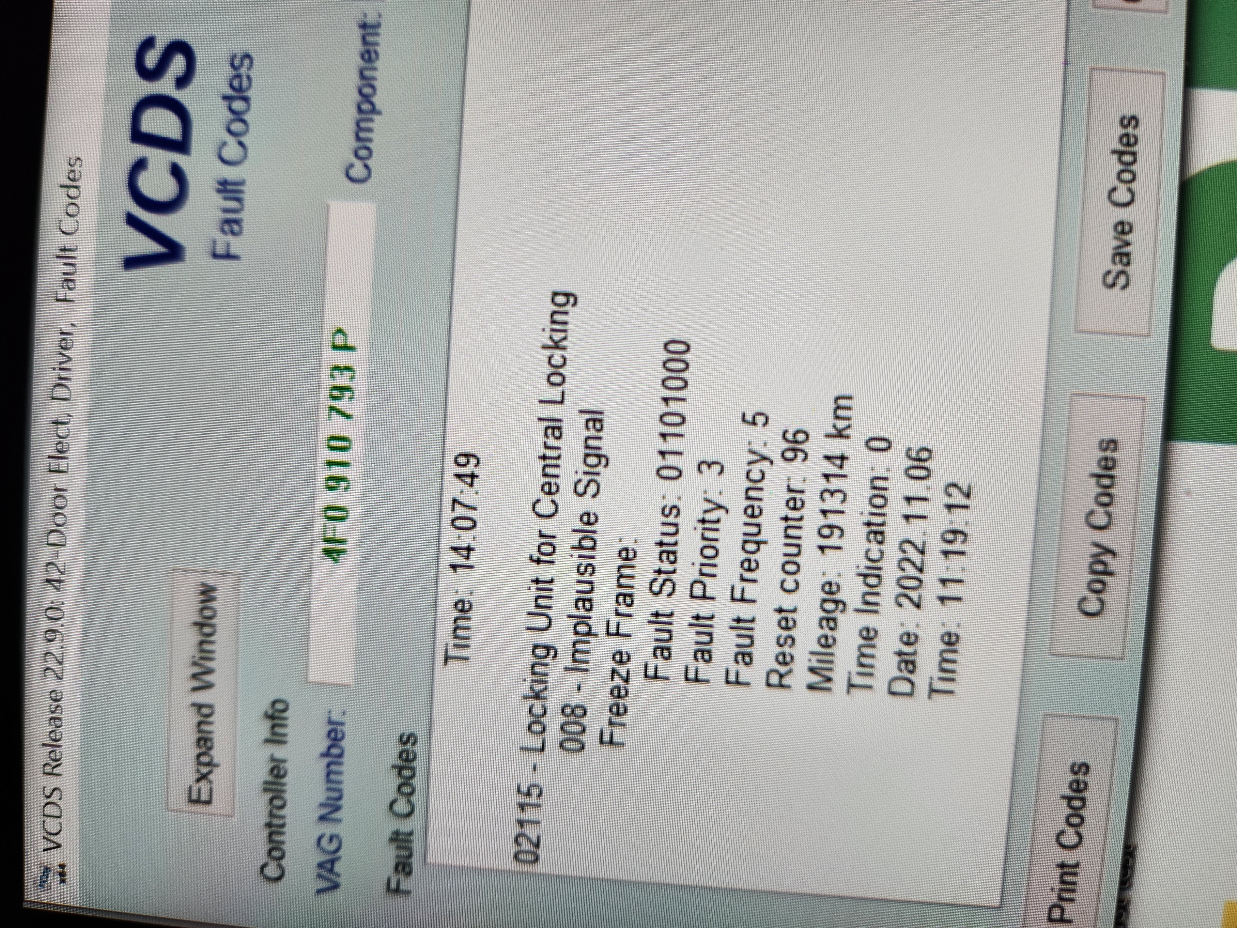 I plugged in the Vagcom and the fault code below flagged up. I noticed the interior red lock light (next to the lock/unlock button) doesn't work when the lock button is pressed but I can hear the locks engaging (not sure if from the drivers side door though). I tested the lock with Vagcom and it locked the door (interior lock light came on) but as soon as I opened the door again (using the inside handle) it stopped working again.