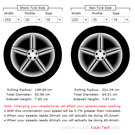 I note that the Audi upgrade package has 255/30/19 tyres on the front and not 35 profiles, presumably to keep the rolling circumferences similar front to rear.