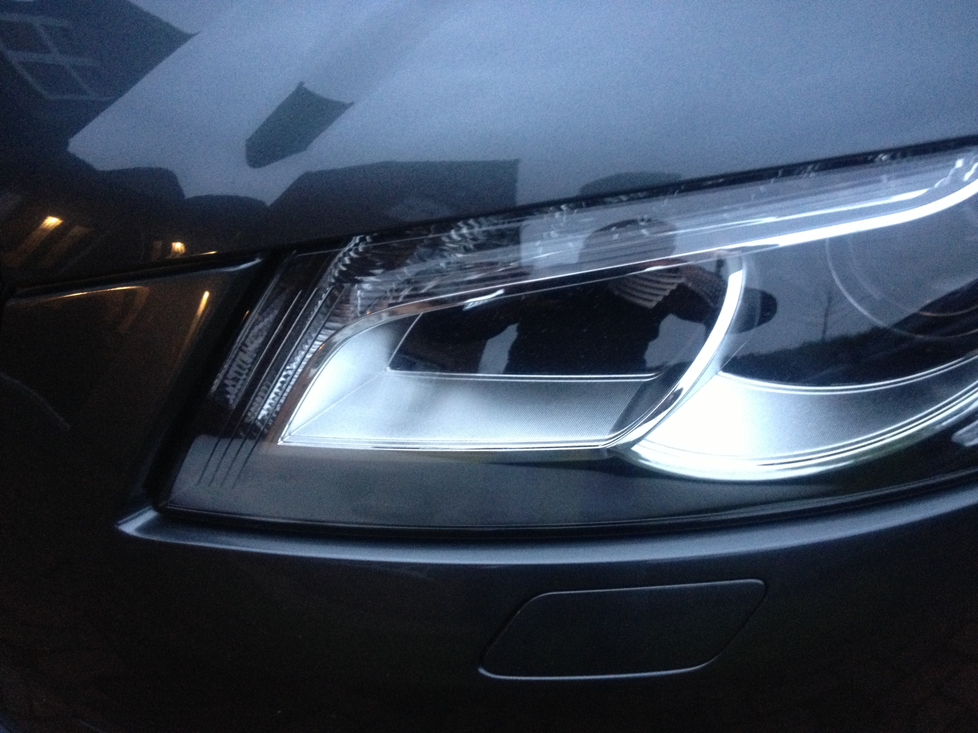I had a lot of condensation in my passenger side headlamp - they replaced it under warranty as whilst a small amount of condensation is within Audi's "acceptable" limits (apparently), this was half way up the unit and never went away !