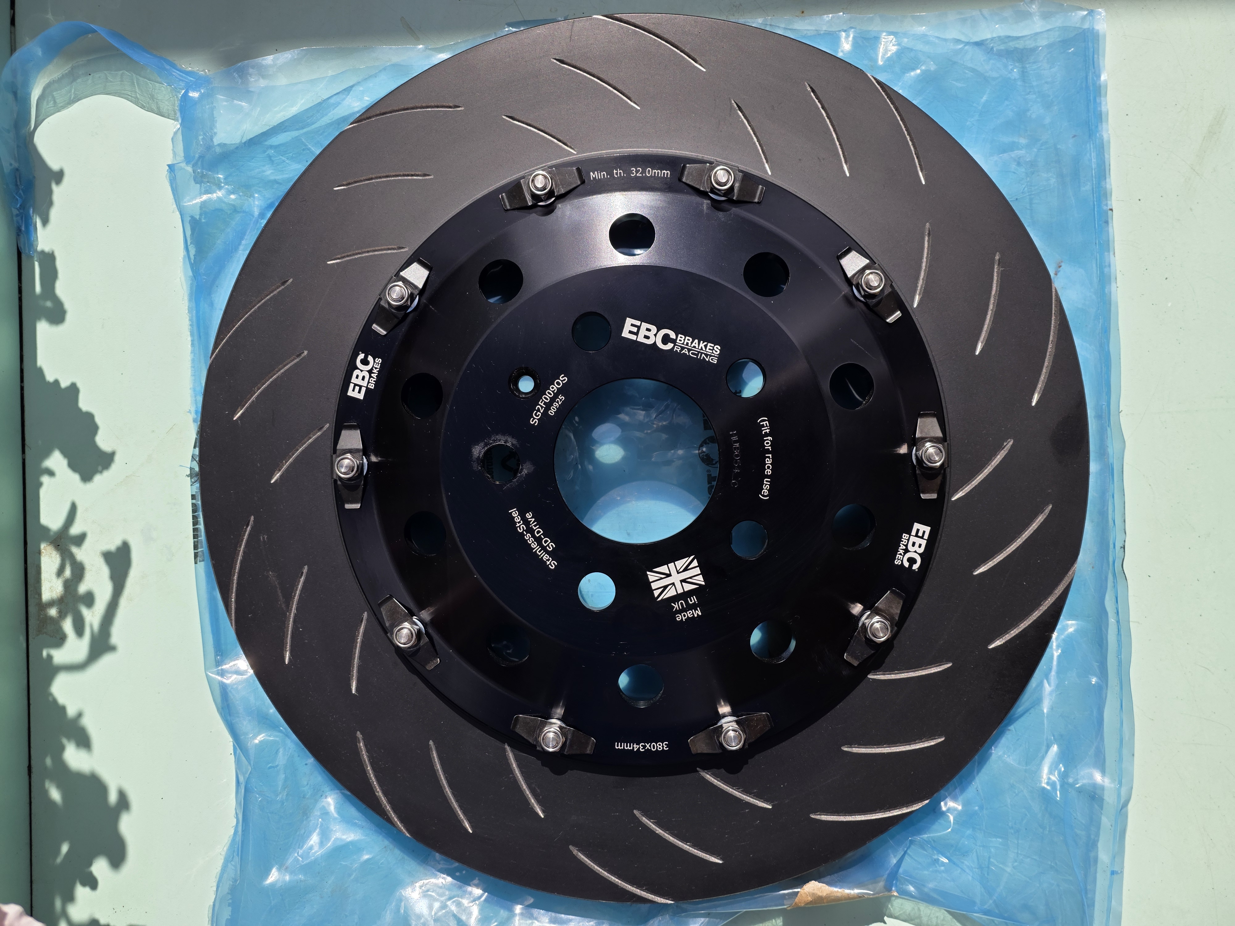 Due to my b8 rs4 not having standard calipers fitted, and not realising this, ( have the Akebono caliper not the Brembo ),I have a pair of 380mm EBC 2 piece floating front discs that are not compatiable. The right hand disc box has been opened, fitted, then taken off and put back in box due to this mistake. They have not been used, so still in original condition, still all black, these are for sale as need to fund a compatable disc for car. Also still has caliper carrier bracket/adaptor in box.