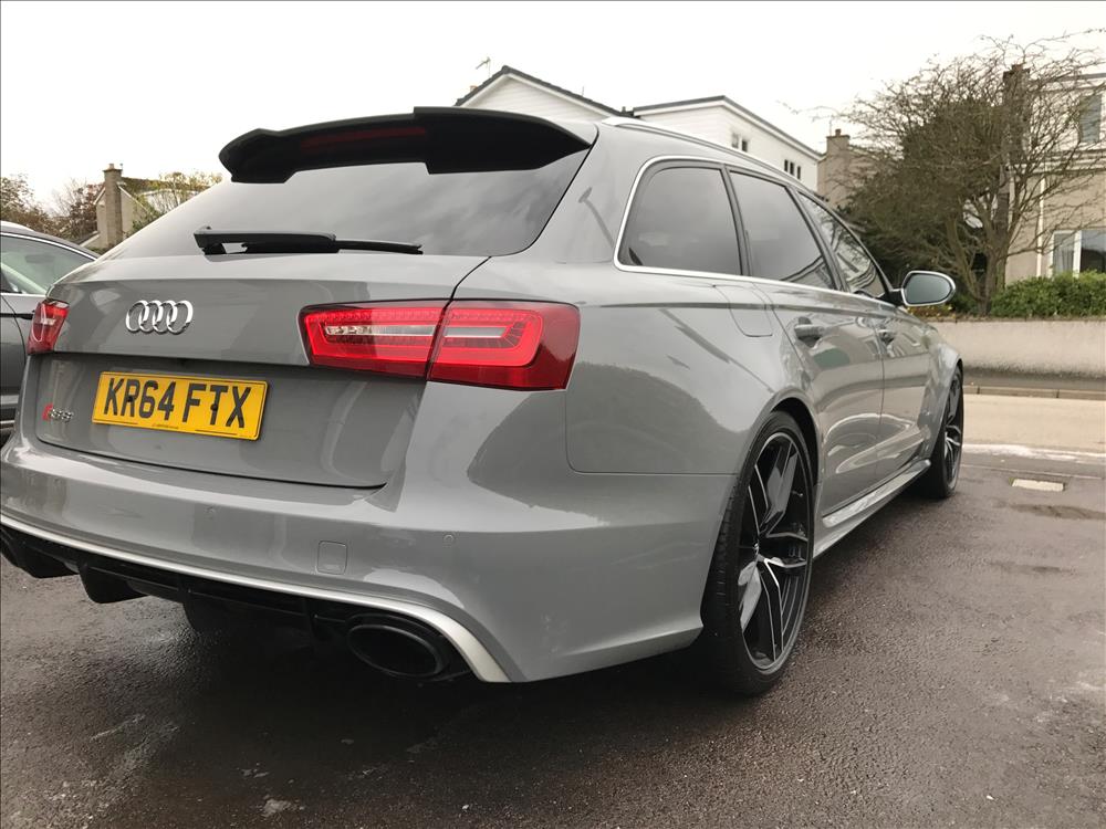 Nardo Grey. 28k mls. Dynamic pack. Sports differential. Sports exhaust. Led high beam assist headlights with headlight range adjustment. Electrically folding adjustable and heated mirrors with anti-glare. Parking system plus front and rear with rear view camera. Panoramic glass roof. Matt aluminum styling package including air intake duct with Quattro logo. Privacy insulating glass. Matt aluminum roof rails. Keyless Start. Valcona leather honeycomb-quilted design with rs6 embossing on the front seats with memory function. Electric 4-way lumbar support. Multi-function Heated steering wheel with paddles. Heated front seats front centre armrest. Heated Rear seats with arm rest, cup holder & first aid kit. Inlays – piano black finish. Door mirrors with memory and auto dimming function. Bose® surround sound. Advanced key. Bluetooth phone connection. Mmi navigation plus. Dab radio. Remote electric boot opening/closing. LED RS6 illuminated sill plates.