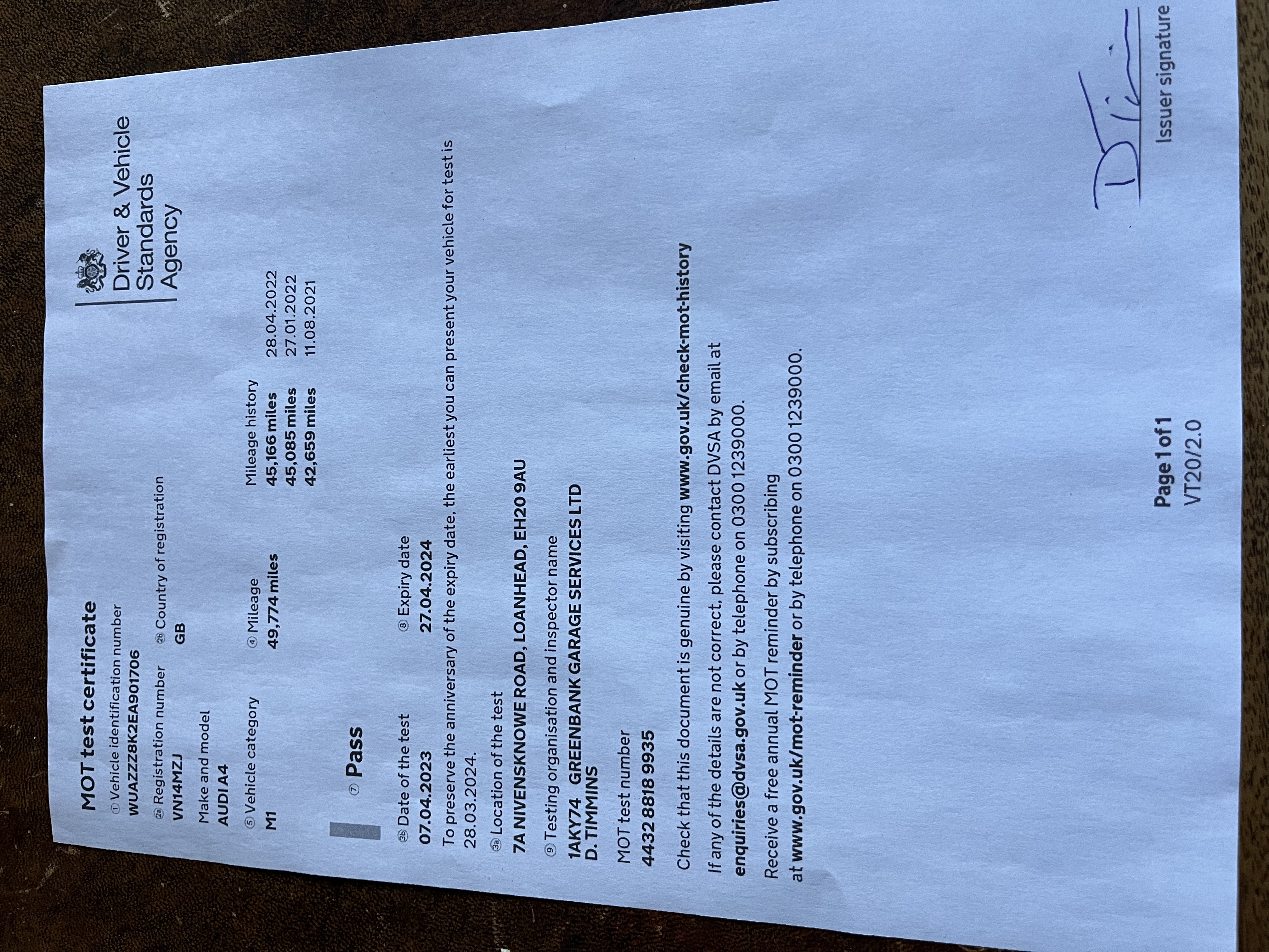 Autohaus recently did the MOT which expires on 27 April 2024 (no advisories) They also did a full health check and diagnostic reporting no issues and said it was one of cleaner examples they’ve seen.