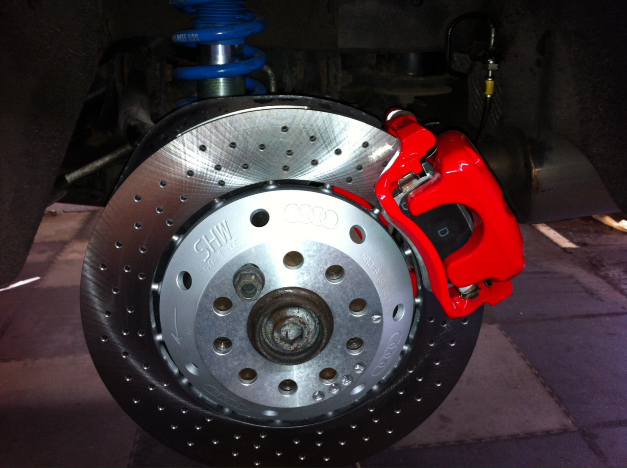 • Big Break upgrade ( 6 pot C6 RS6 v10 brake callipers, painted red, rear callipers replaced painted red)
