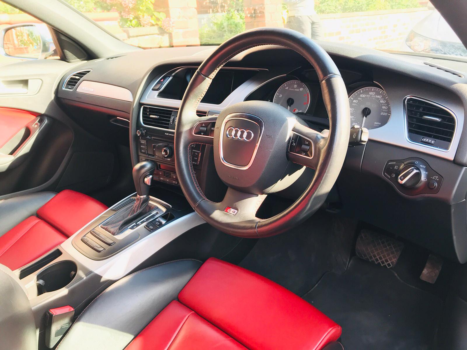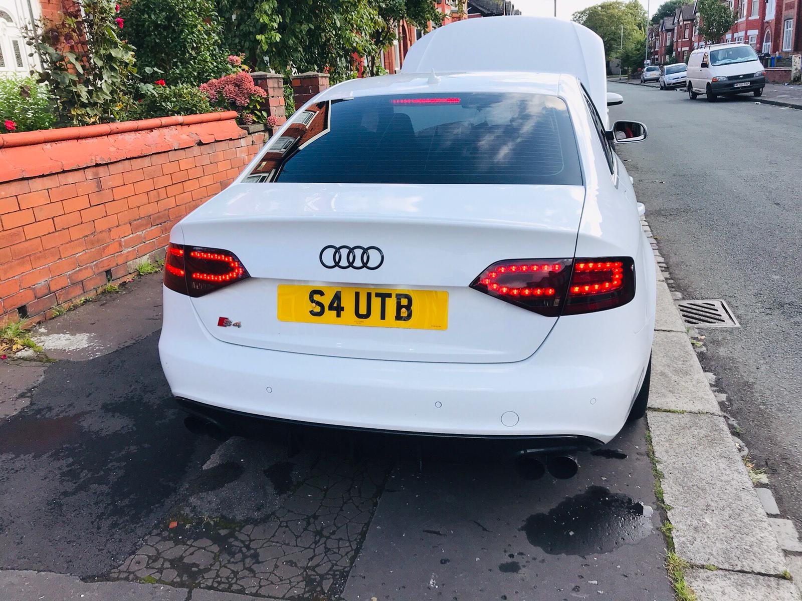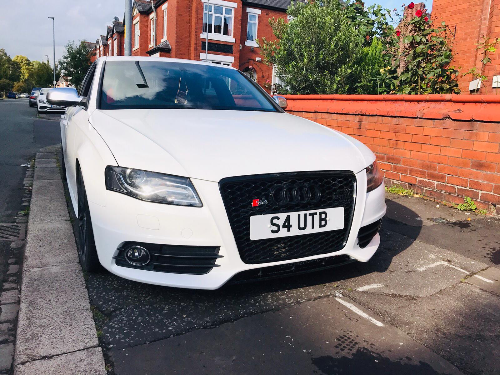 Audi 2010 S4 Arctic White, 53,000 miles, Full Service History at Audi Main Dealer and Specialist History. Interior is Red and Black Leather in Great Condition with Folding Rear Seats. Exterior is Paint Corrected and Detailed including Ceramic Coating the 19" RS4 Alloys which has been recently powder coated in black with near to new Pirelli PZ Zero Tyres, an RS6 style honeycomb black Grill and a rear diffuser in gloss black. The rear tail light has been tinted and the car has Xeon front headlight with day time running lights as standard. The Car has been Professionally Tuned to Stage 2 by the legendary MRC in 2015 which included adding a Full Scorpion Exhaust system not just a catback which makes the car sound Great whilst producing 520 Bhp. The Brakes have been upgraded to EBC pads and Disks. The Great Private Plate is included in the Sale. The Car has been lowered using H&R lowering springs which makes the stance look really good and perfect wheel fitment. First Come will buy this Car it is cheapest considering the colour and power which is more than a Mercedes C63 or BMW M5. For any-more information message me via the forum or my email omar.m5.007@gmail.com