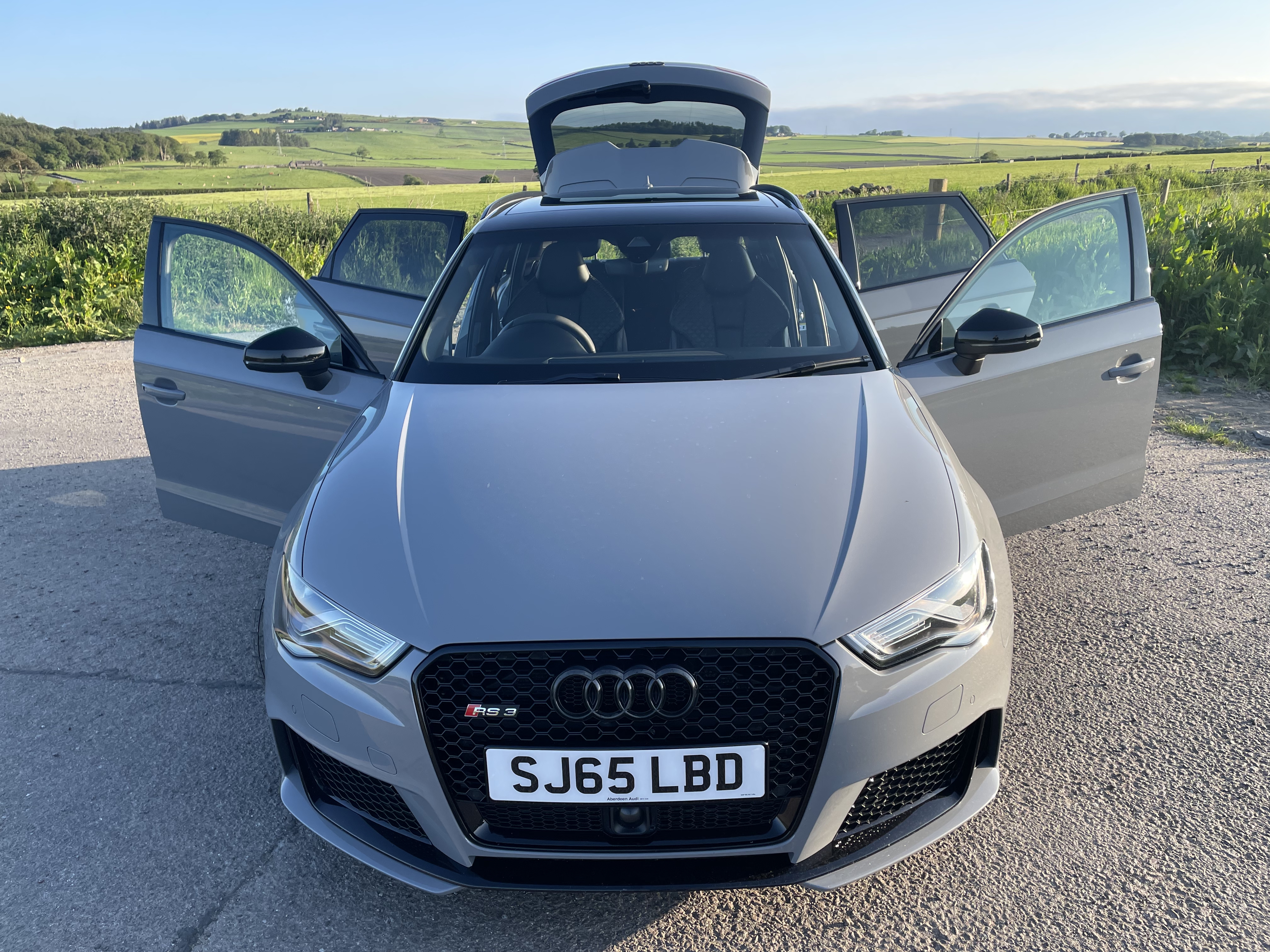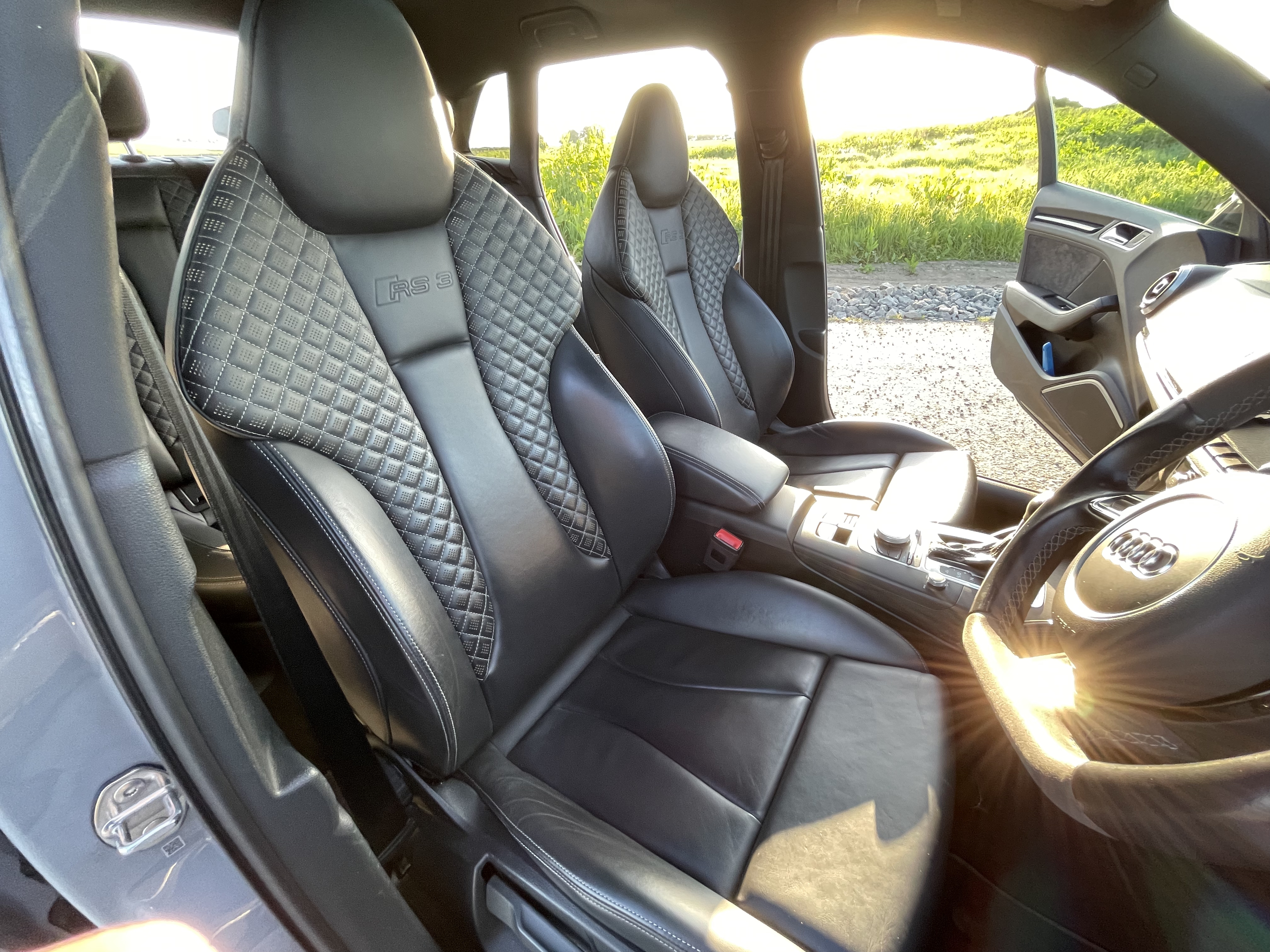 2015 with FSH and massive optional extra specification, every box was ticked when it was purchased - 5dr finished in popular Nardo grey which is very sought after, Privacy Glass, Brake Callipers Painted in Red with RS3 Logo, Alloy Wheels-8.5Jx19in F./ 8J×19in R. High Gloss Black Roof Rails, Audi Exclusive Paint, Door Mirrors Electrically Adjust. /Folding/ Heated, Exterior Mirror Housings in High-Gloss Black, Panoramic Glass Sunroof, Auto Dimming Rear View Mirror, Audi Magnetic Ride with RS Sports Suspension, Bang & Olufsen Sound System, High-Gloss Black Styling Package, Technology Package, Reversing Camera, Cruise Control, Super Sport Seats / Lthr / Heated, 19in x 8J 5-Arm Rotor Design Galvanised Silver Alloy Wheels with 235/35 R19 Tyres and Anti-Theft Wheel Bolts, Audi Parking System Plus, Front and Rear with Selective Display, Colour Drivers Information System (DIS), DAB Digital Radio Reception, Dual-Zone Electronic Climate Control, Heated Front Seats, MMI Radio Plus, Audi Music Interface, Mobile Phone Preparation - Bluetooth Interface, Rain Sensor, Thatcham Category 1 Alarm, Tyre Pressure Loss Indicator, Upholstery - Fine Nappa Leather Upholstery with Embossed RS3 Logo, Front Centre Armrest, RS 3-Spoke Flat-Bottomed Leather Steering Wheel, Contrast Stitching and RS Emblem, Anti-Lock Brake System (ABS), Audi Drive Select, Progressive Steering, Electromechanical Parking Brake, Exterior Mirrors - Heated and Electrically Adjustable, Satellite Navigation System-SD Card Based, Audi pre sense emergency braking system.