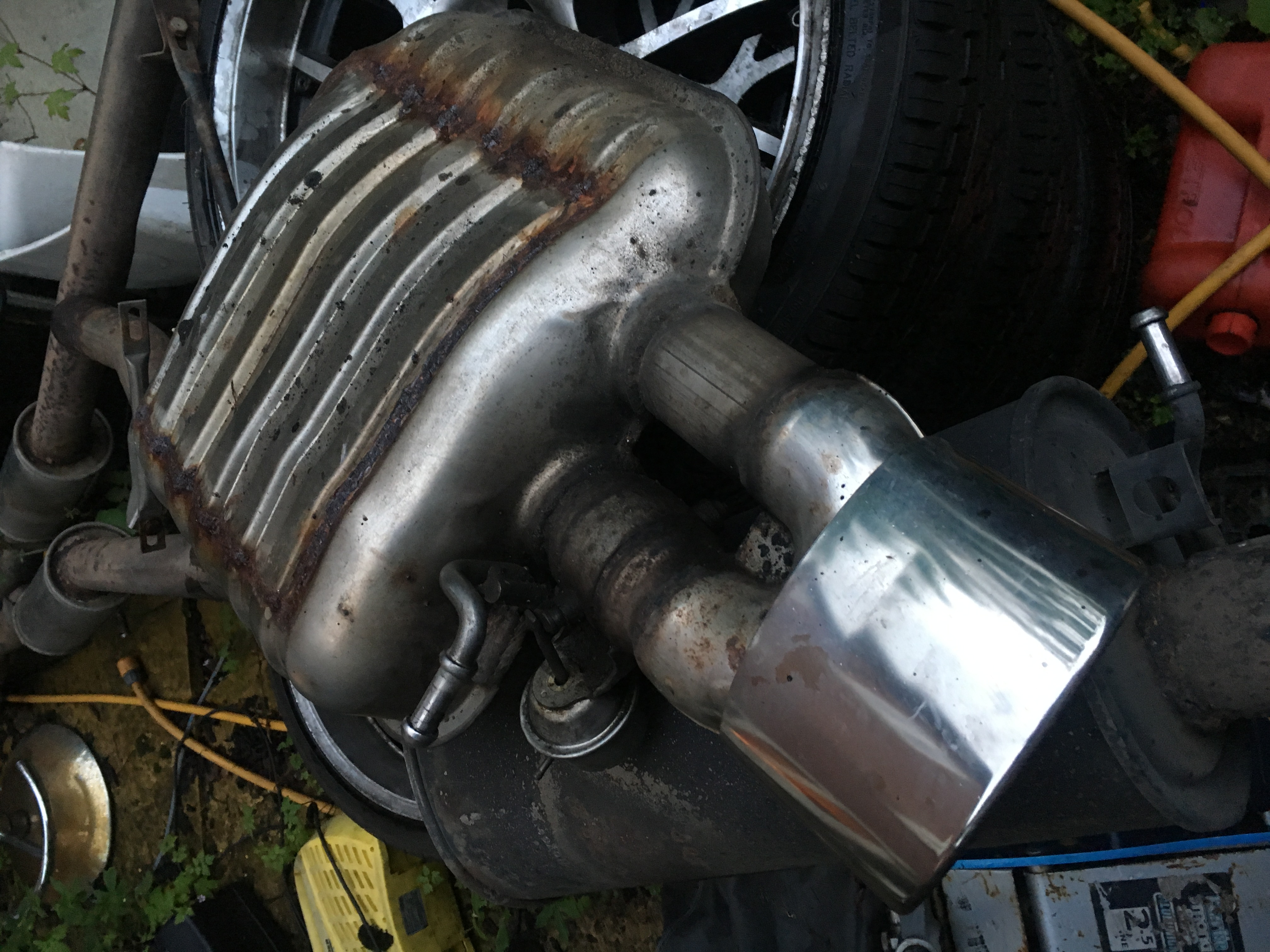 Pair of back boxes that i had on my B7 RS4 Avant, I gutted them and welded them back up, some surface rust can be seen on the welds where they were left outside but that's it, I had these fitted along with an ECS H Pipe (Centre Box Delete), Can also be fitted to standard centre section. Sounded very good for very little money. Boxes were cut and welded on the top side so cannot be seen when on the car.