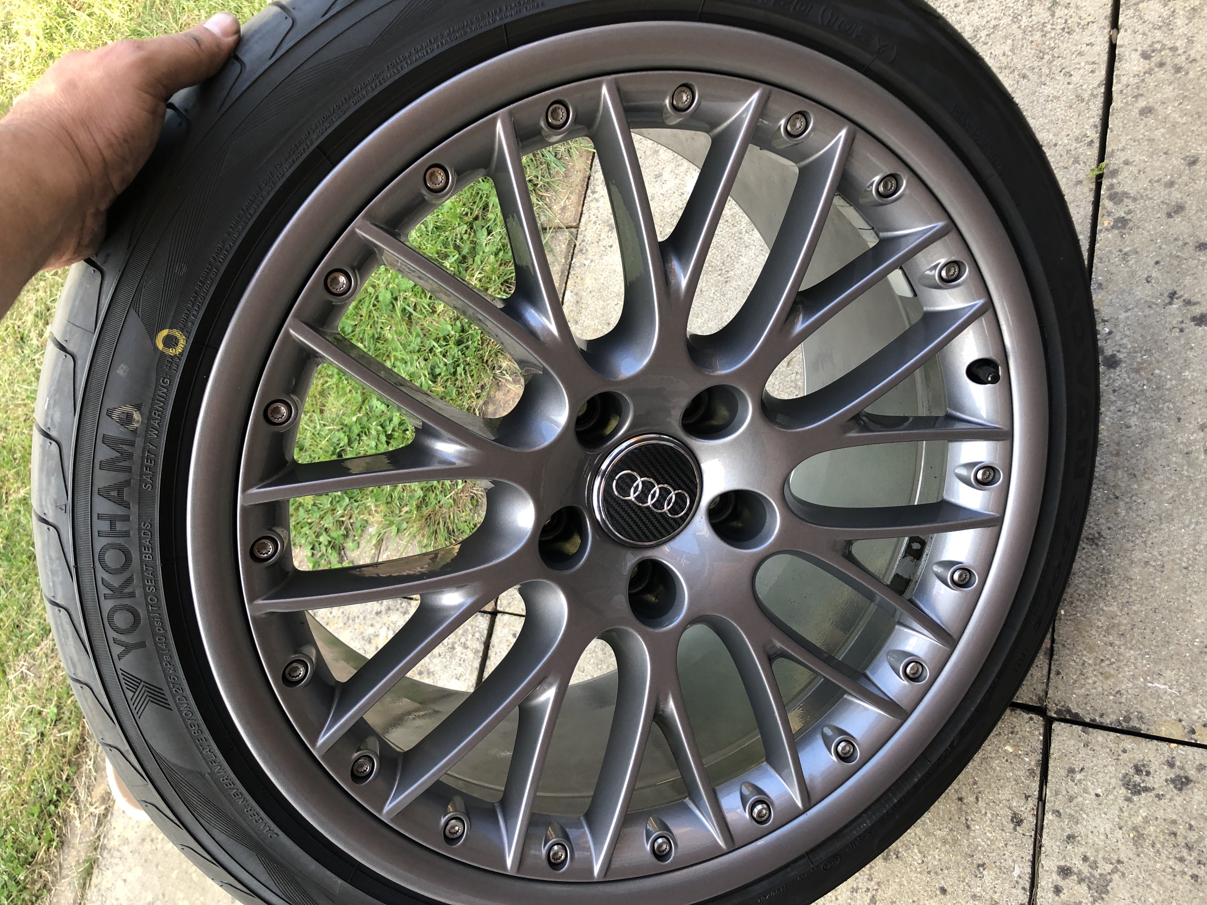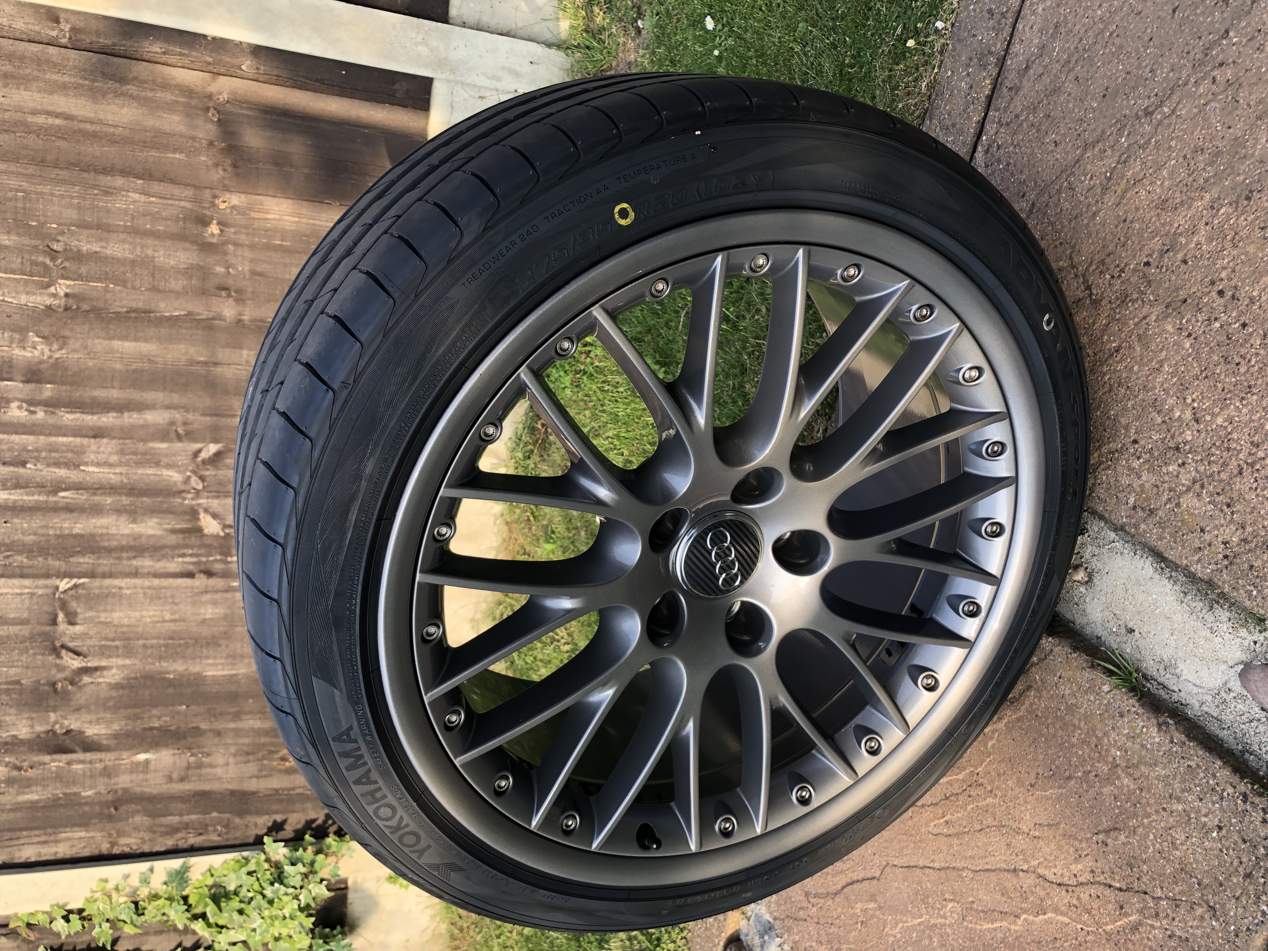 And the tyres were too worn for my liking and were for the ‘stretched’ look...which I don’t like...so recently had these wrapped in new 275 / 35 / 20 Yokohama Advance Sport R01’s. Done no more than 500 miles since! This unfort means they no longer fit my lowered B7 (on PSS9’s) - tyres are too wide.