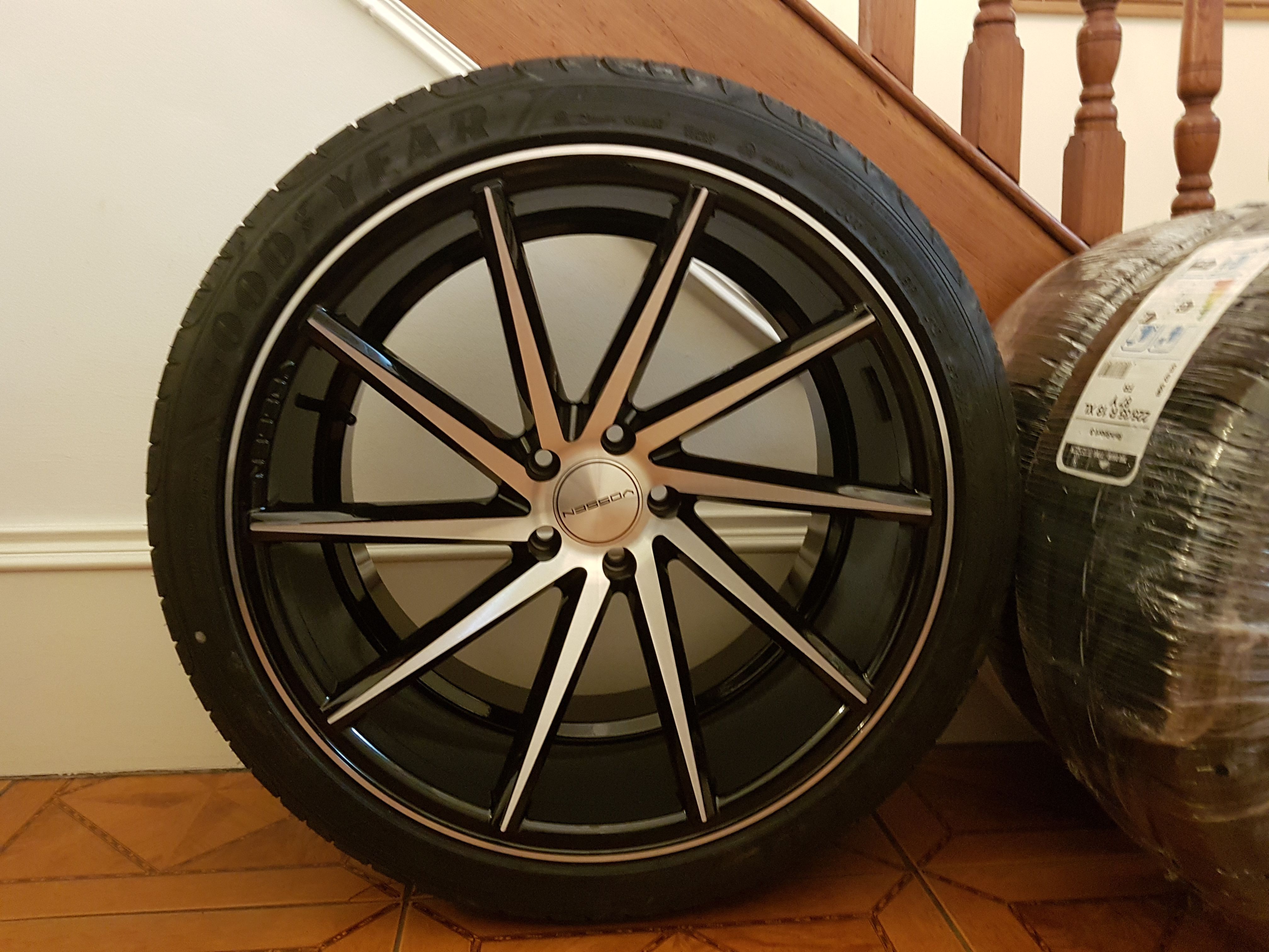 Up for grabs are genuine 20" Vossen CVT directional alloy wheels. The wheels have been fully refurbished in gloss black with a diamond cut machined face which looks amazing.