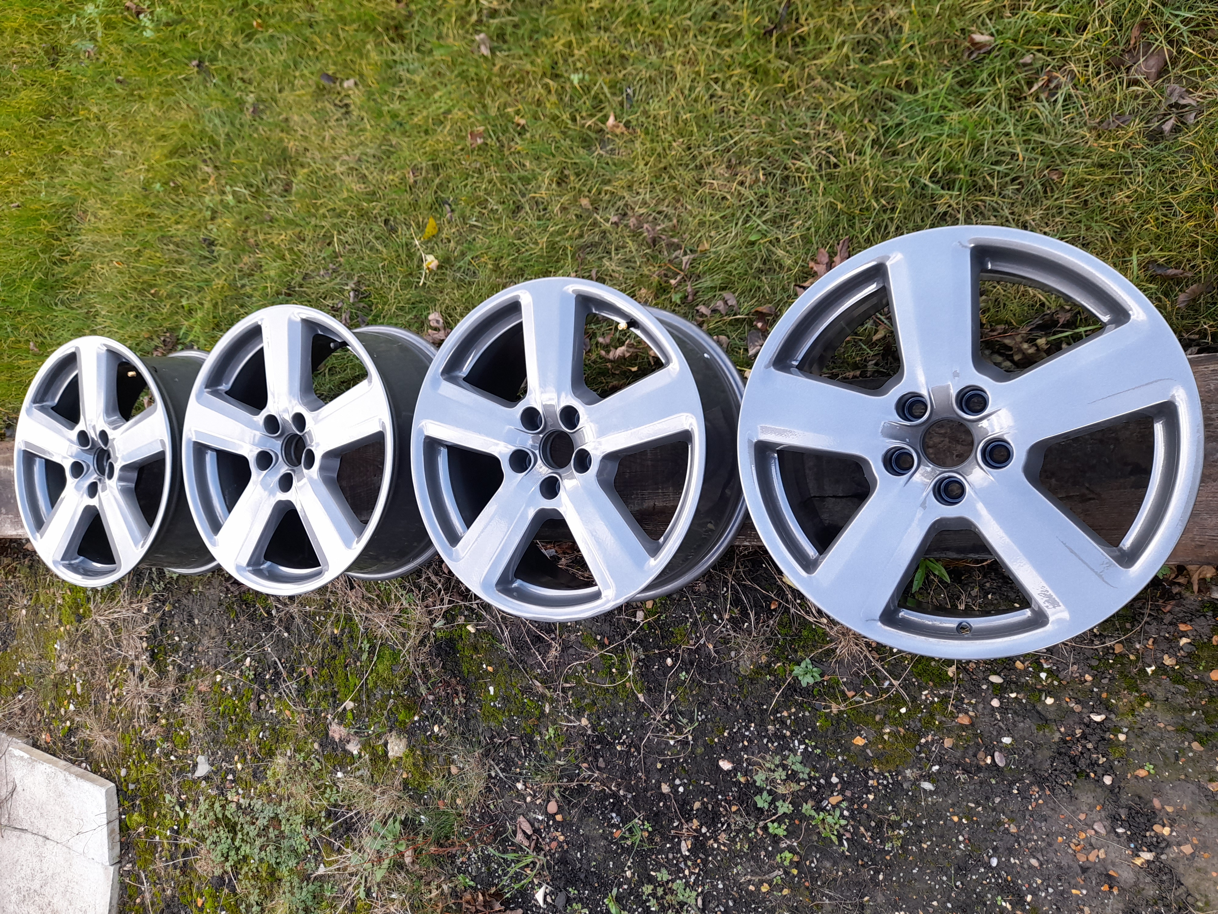 Been on ebay a month with no takers, hence I'm open to some movement on the price to get these sold. Very very similar colour + finish set in Hemel (no mention of centre caps) for £450. Leaving mine on ebay at £400 (partly to cover fees) but reducing elsewhere. Collection only.