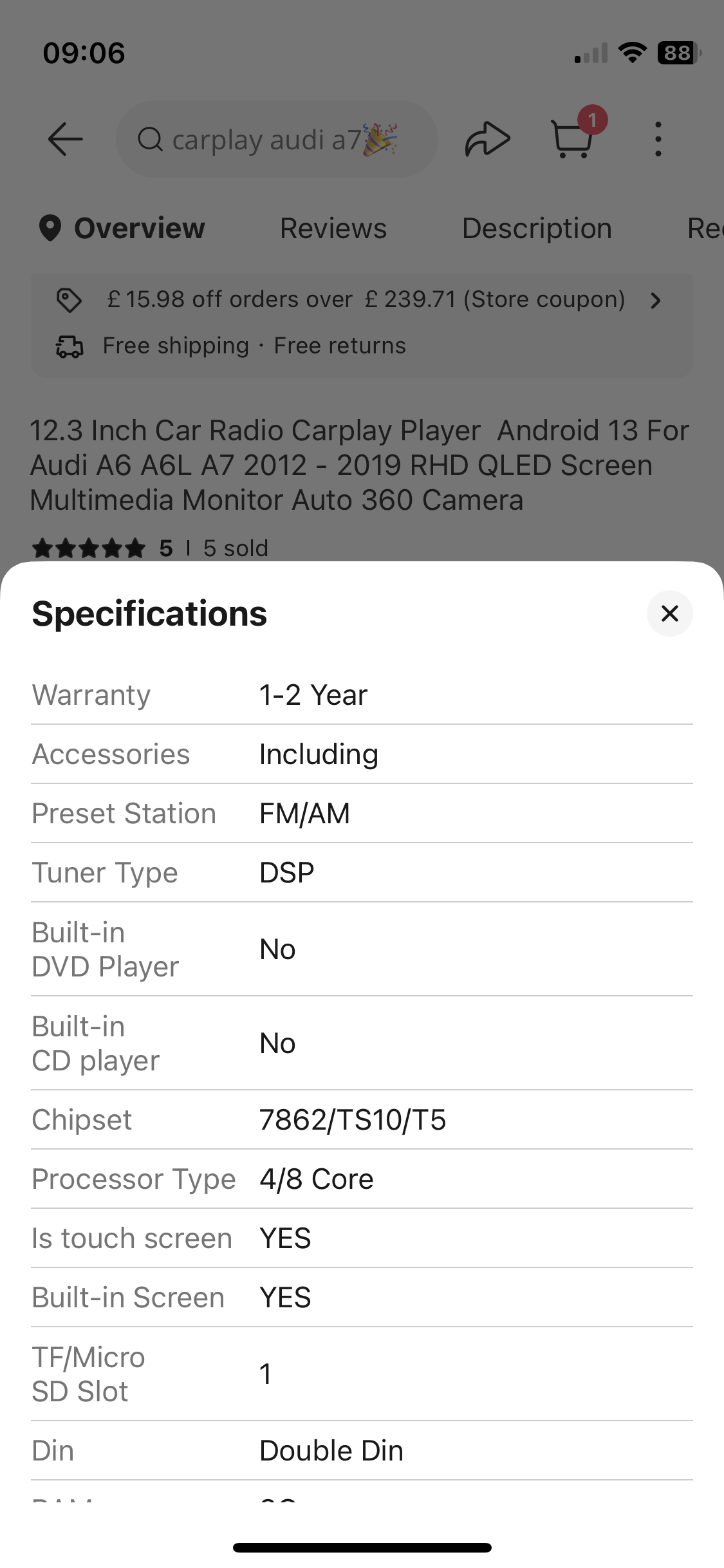 Android 13 12.3 inch QLED screen to fit RHD RS7/A7