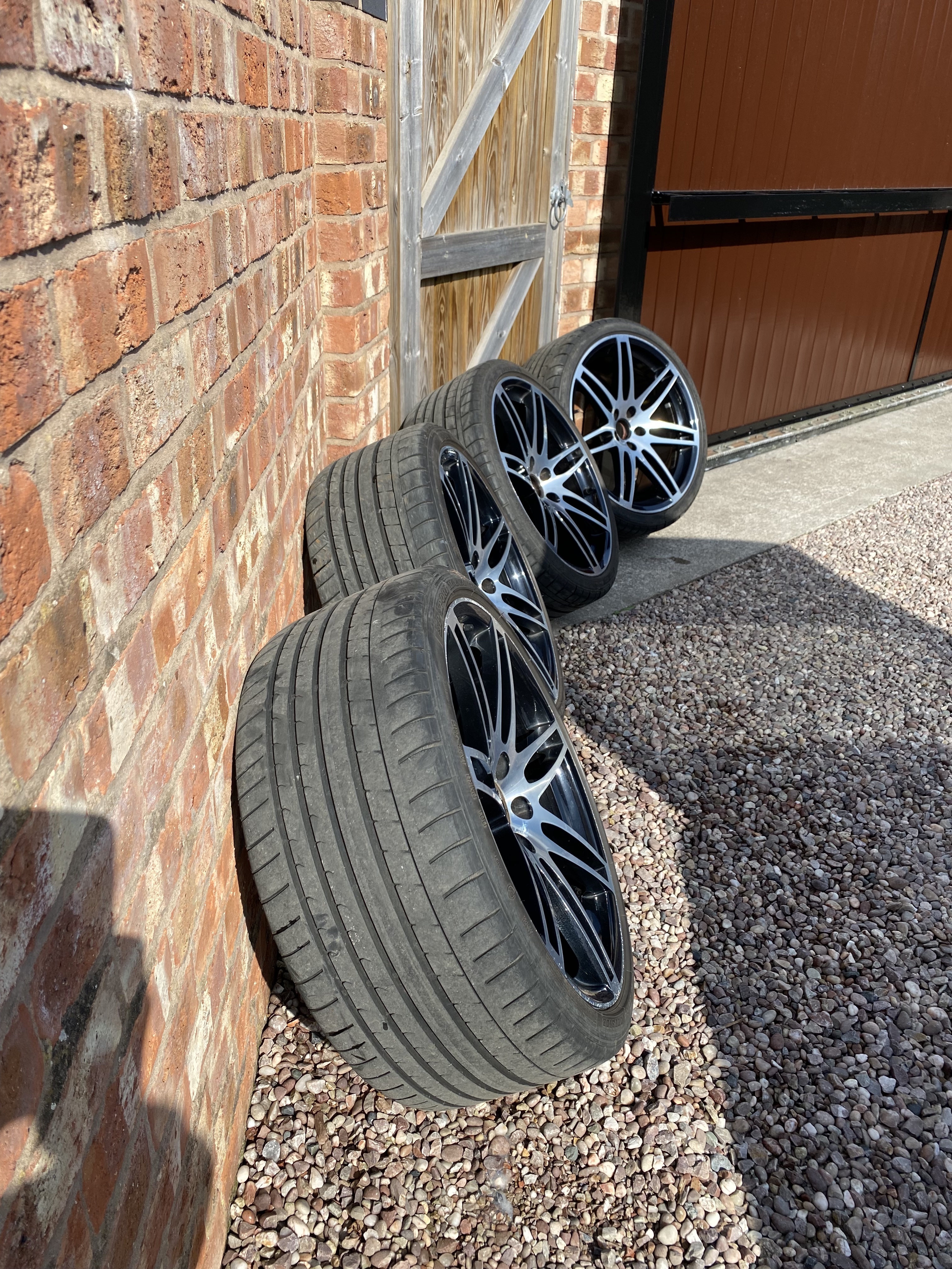 So I have 4 used J9's for sale. They are the S5 Le Mans model. They are still in good condition and have recently been rebalanced by S1 Alloys in Chester (excellent company by the way, who also did the wheel swap for me). They also come with Dunlop 265/30 ZR20 (94Y) which all have at least 4.5mm on them. Wheel details: