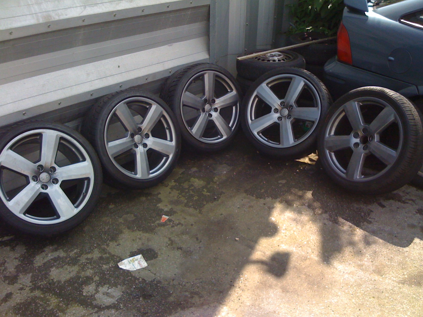 Beautiful set of 5 alloy wheels with some very good low profile tyres. 4 are genuine AUDI RS6+ and 1 is a non OEM (which was used as a spare. Shown on the Far right in the group pic )