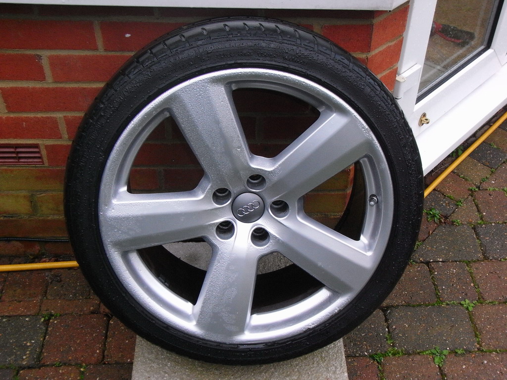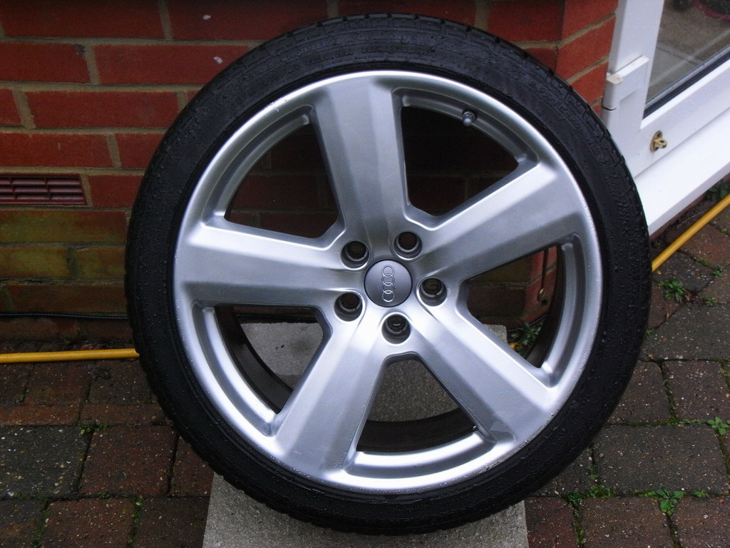 1 set of 4 19" 5 spoke RS6 alloys (in need of refurbishing) with Sport Contact 2 tyres (in need of replacing).