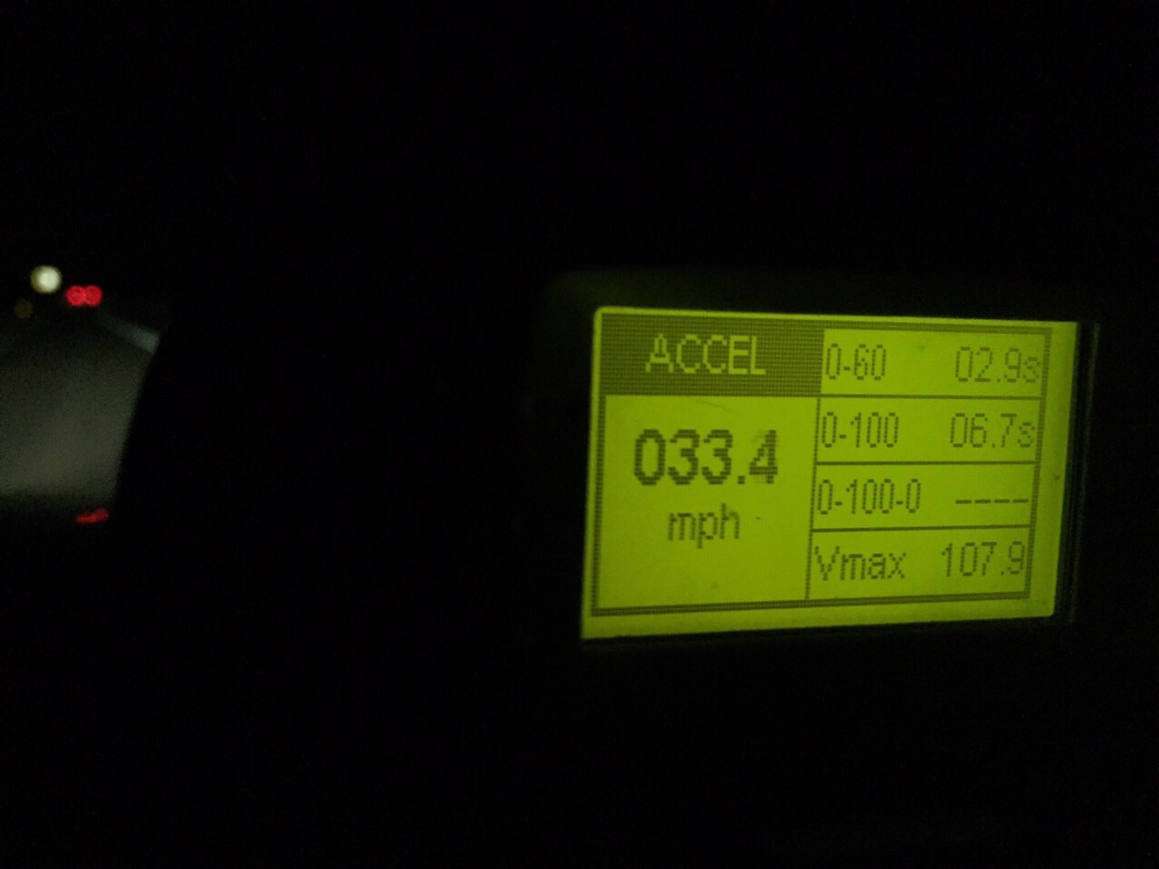 0-60/100mph... (On vbox display) 1ft roll selection OFF.