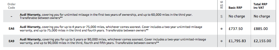my RS6 manufacturer warranty is up at the end of November and I've been trying to get a ball park on the price of extending it, been told by Audi they won't/can't give a price till 30 days before it ends and suggested that it's calculated on individual basis. So does this mean the pricing is specific to the specs?