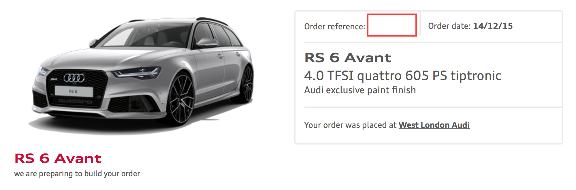 audi City are low on the 'BS" situation, Martin and his colleagues are great, for a dealer opposite the Ritz surprisingly low arrogance, and a great car buying and collecting experience.PeterRS wrote:Audi City told me to add 6 months to a week 18 build for exclusive paint. So I stuck with Misano. These build dates and what causes them to change lack transparency in my experience. I made some tiny spec changes relating to wheels and external trim a week after placing the deposit and hey presto I am now apparently now stuck with a week 24 build. Terrified to change it again in case I end up with week 34 or worse!