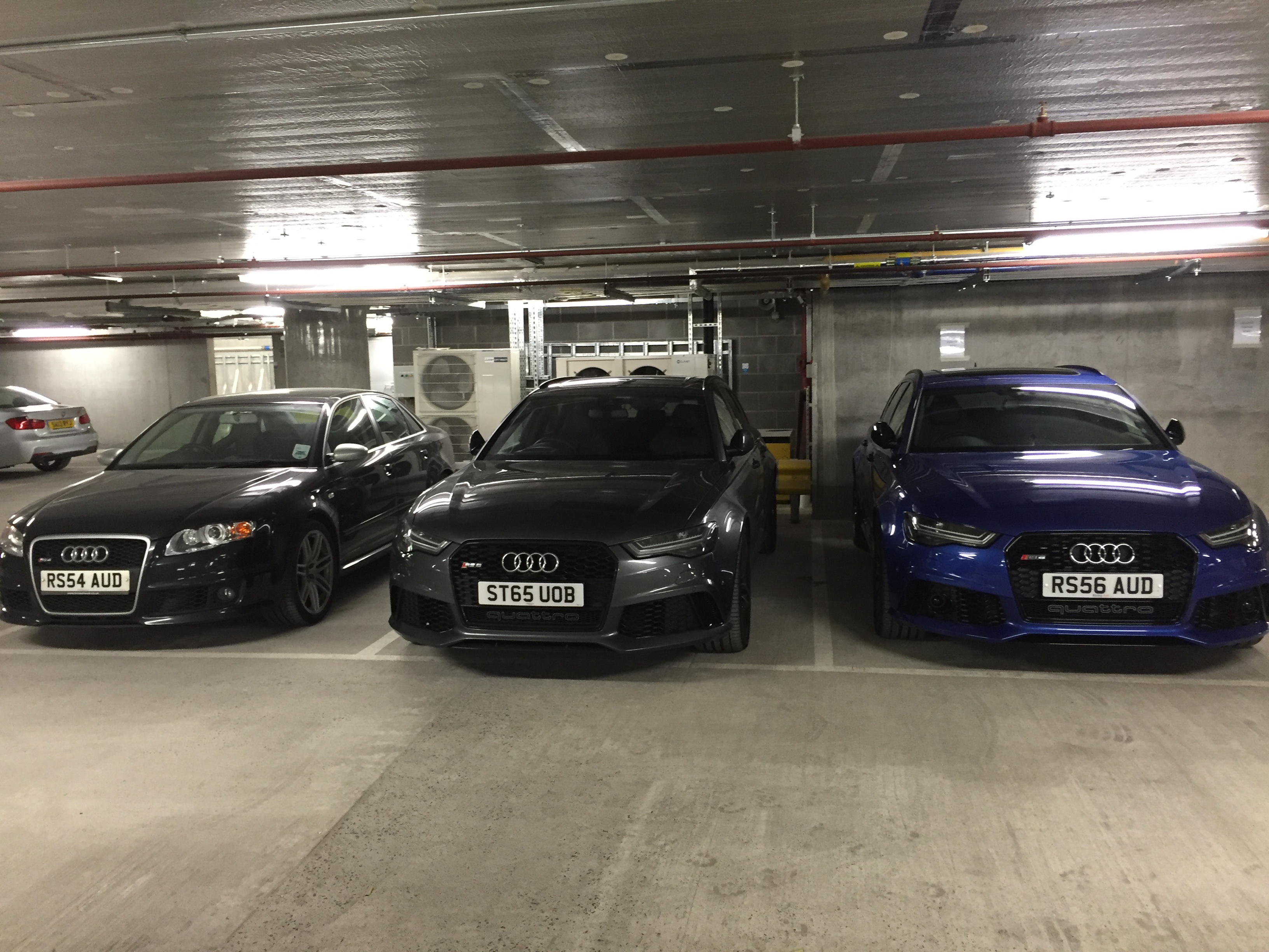 First day with the car and I had to pick up colleagues to an airport hotel and park in two tight carparks Arggggh. The camera parking thingy really helped with my blood pressure. I managed to go through 3 years before someone sat in the back of my B7. Then went to the office to take a photo of old and new together and someones RS6 was in the way. Like buses.