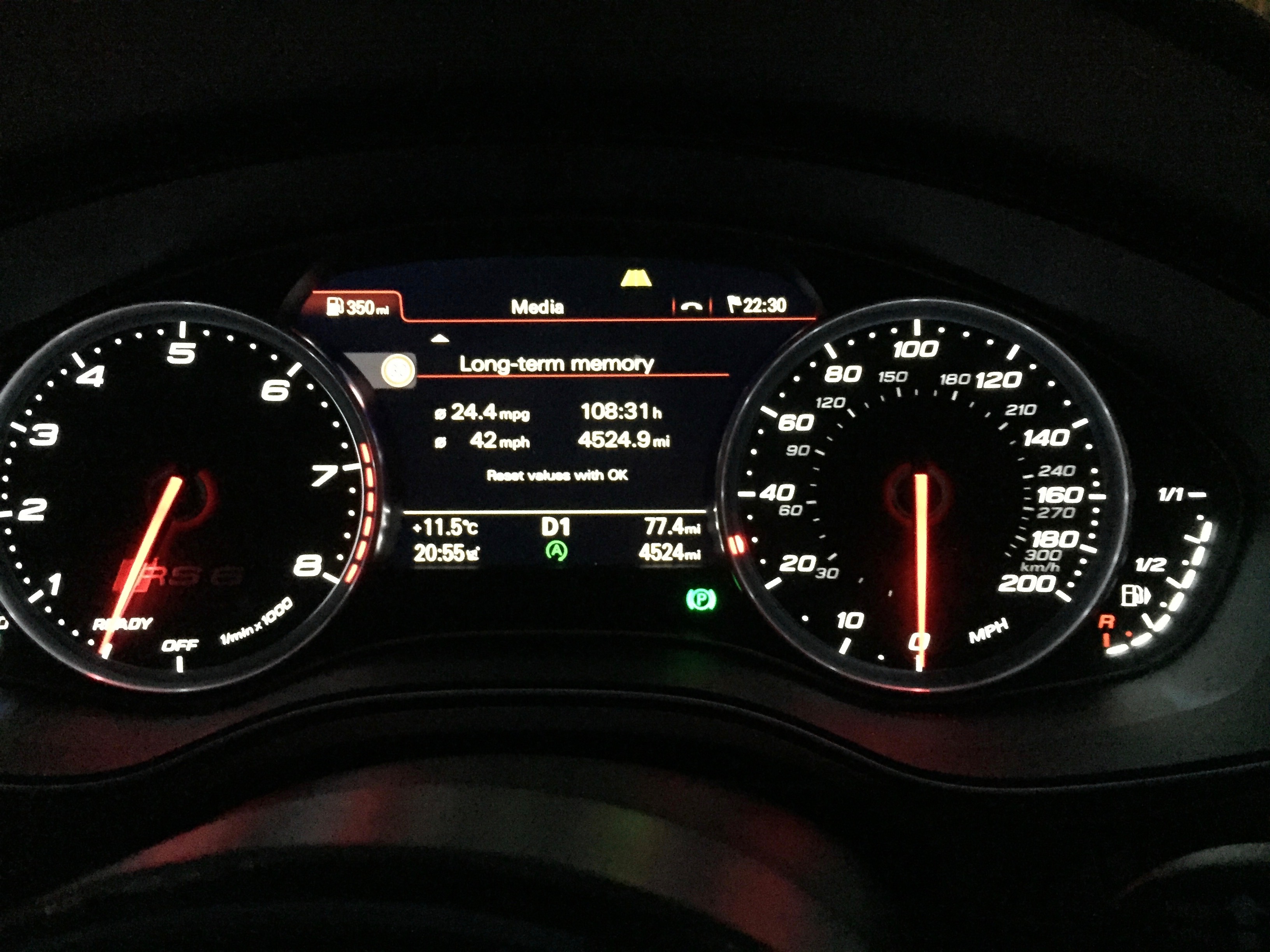 The novelty of it all hasn't worn off yet-I find myself trying to get max mpg and the DIS is constantly on the 'mpg' scale. I know it's not what RS6 ownership is about but after the C6 -best described by Top Gear as 'like chucking buckets of unleaded down a car shaped storm drain'-it really is a breath of fresh air.