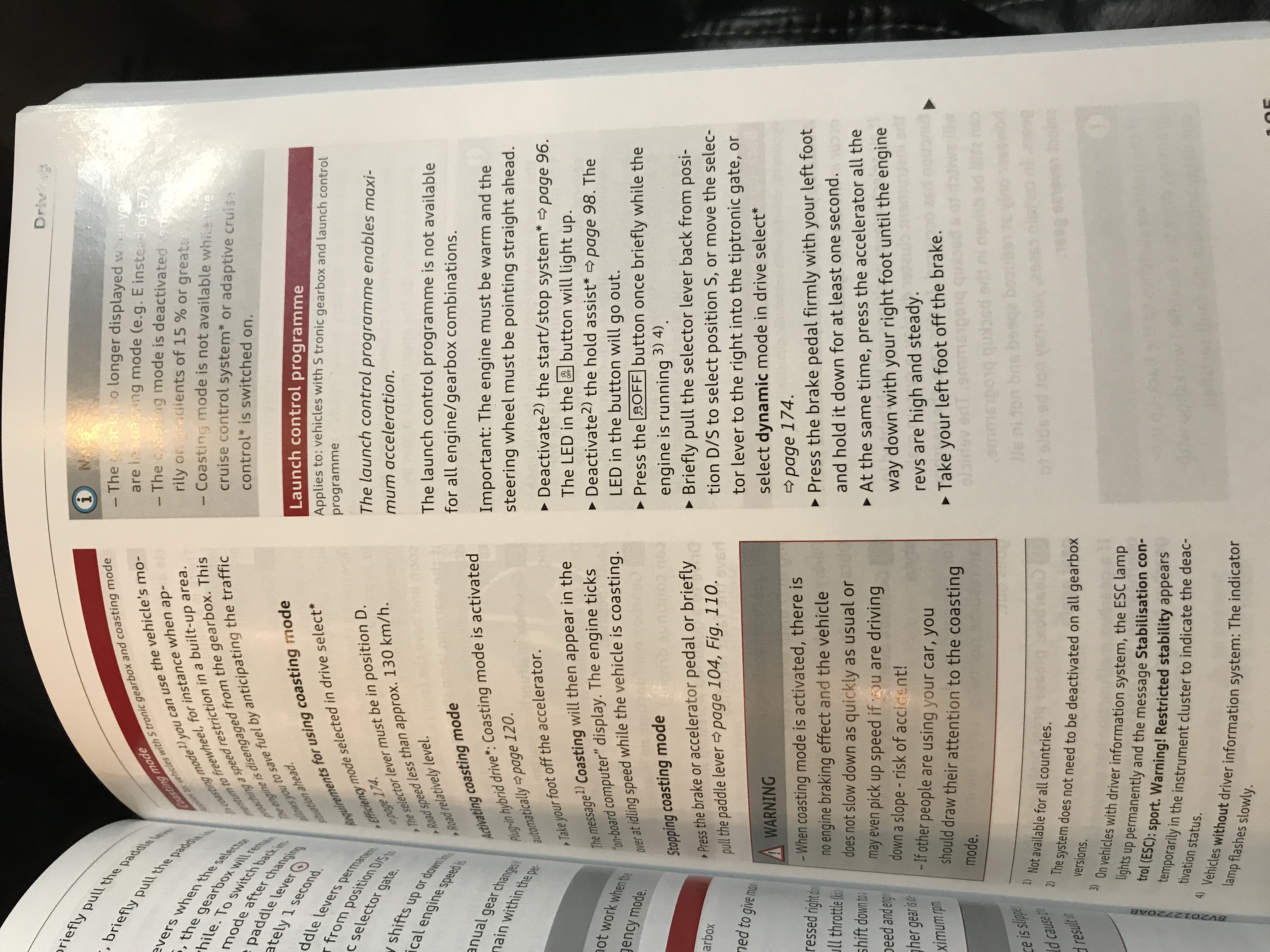-Accelerating with the launch control programme places a heavy load on on all parts of the vehicle. This can result in increased wear and tear.