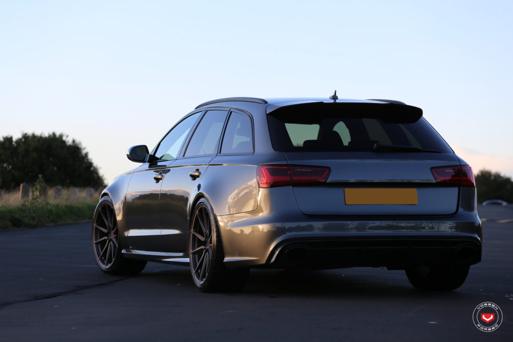 So we just bought an RS6 around 1 week ago just to play with and add some minor mods, and we started with KW HAS lowering springs, not wound all the way down, and added some of the new Vossen HF-2 wheels in tinted matt graphite finish until the new forged wheels arrive.