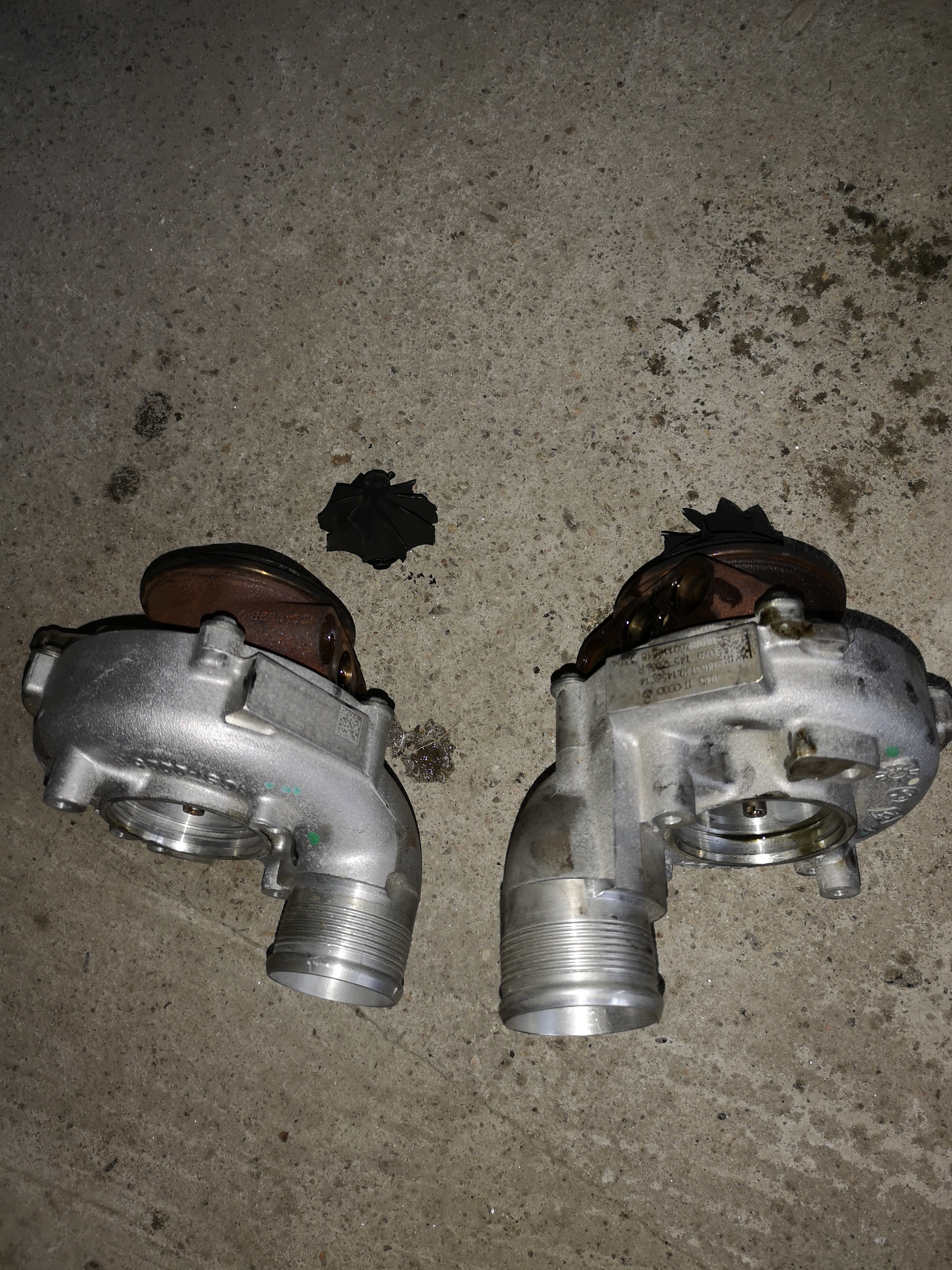 the turbos are with a specialist and soon being rebuilt. The garage have not yet advised what has caused the failure, as they're still investigating.
