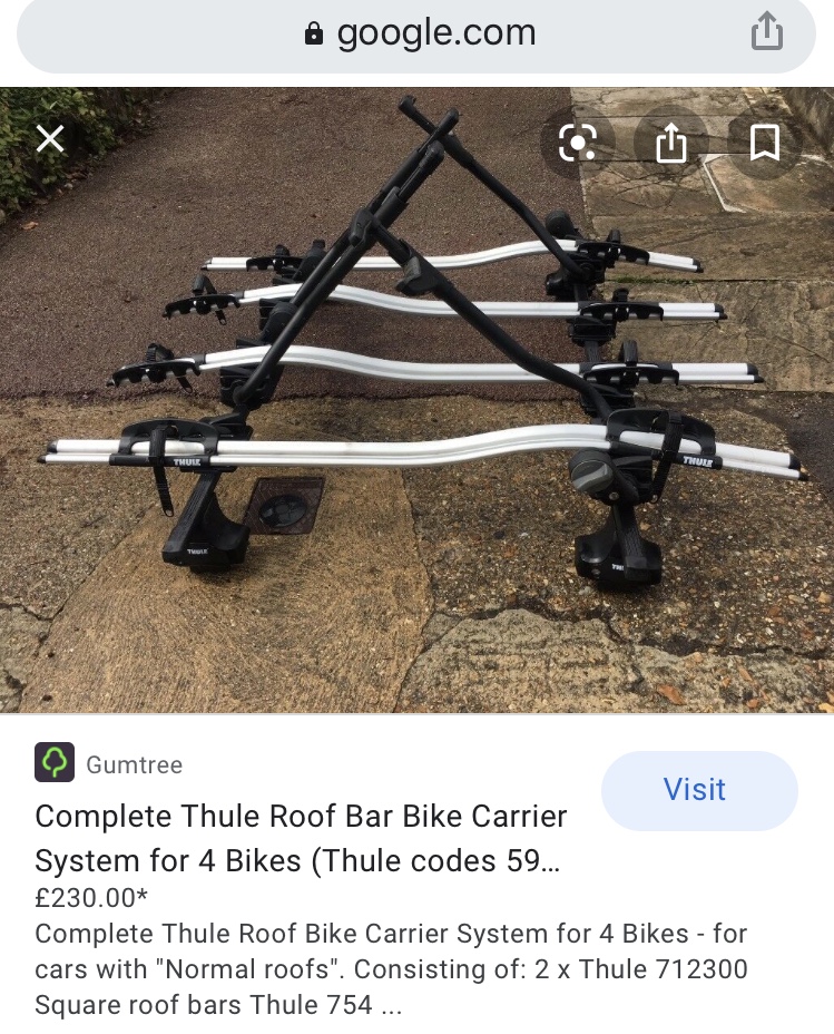 Then you want Thule bike carriers, either pro-ride 598 or fork mounted outride 561. The outer two on mine are pro-ride (older model) and the middle is fork mounted as pro-ride won’t clamp round that bike frame.
