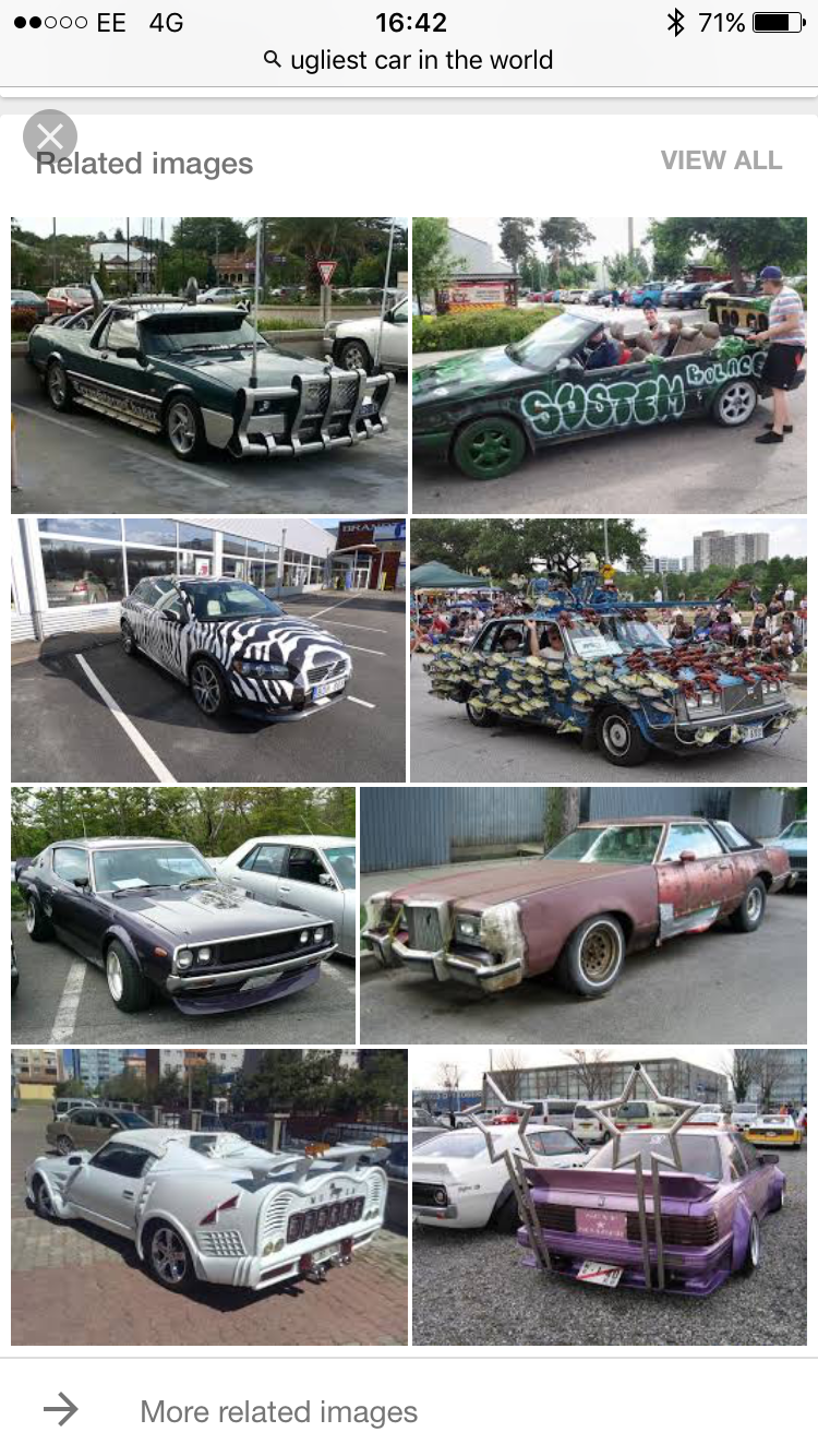 Man, there are some fugly cars out there. I reckon I could design better looking cars with a blindfold on.