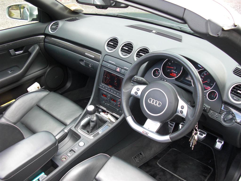 IanWest wrote:Not sure if it is of interest but we put my wife's Cab up for sale last week. It's a Daytona Grey 56 plate with black leather, Sep 06 with 26,000 miles owned by us since new. Extras were adaptive lights, auto dimming and folding mirrors and carbon inlays. Audi Bluetooth GSM mobile phone prep was retrofitted and supplied by CraigyB on this forum. Full Audi Service history and Extended Audi Warranty until Sep 2010 and we put it up at £30,995. It is having new front discs and pads put on it today FOC as they were replaced 4000 miles ago but Audi have recalled it as there was a faulty batch which causes some to warp apparently. Not that I am complaining as it is about £1000 worth of work.