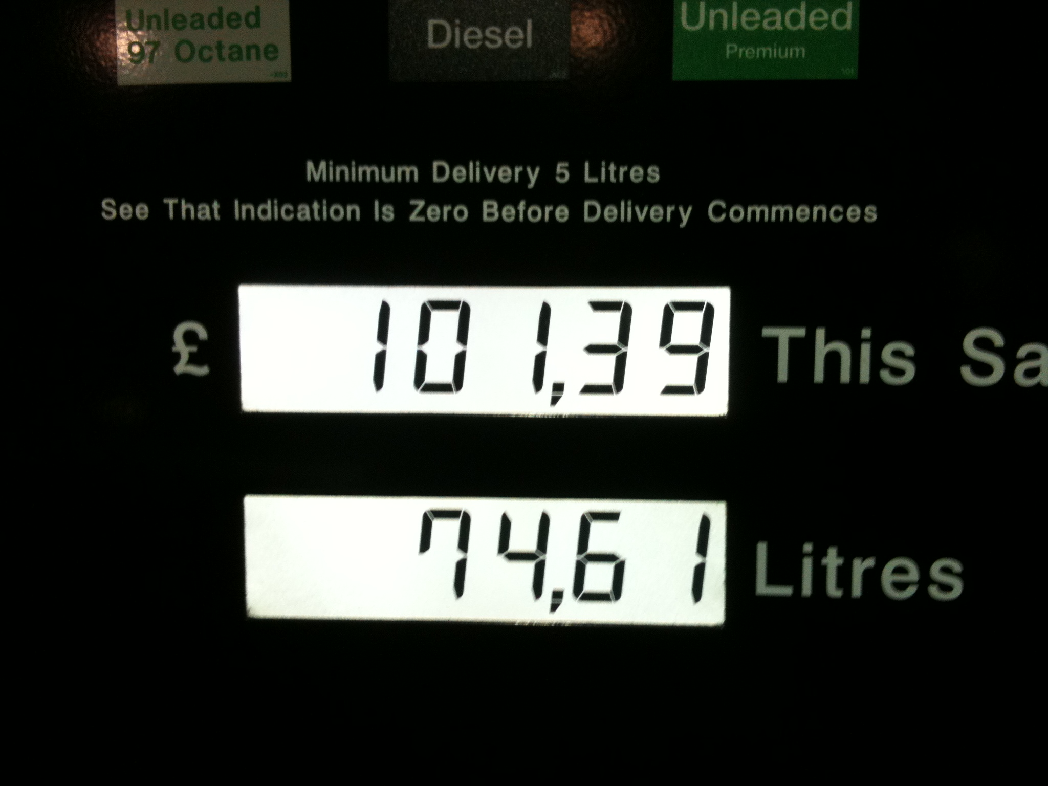 However, my love for it was severely tested last night when this happened. I've been filling up my cars for 24 years and this is the first time it's ever got into three figures.