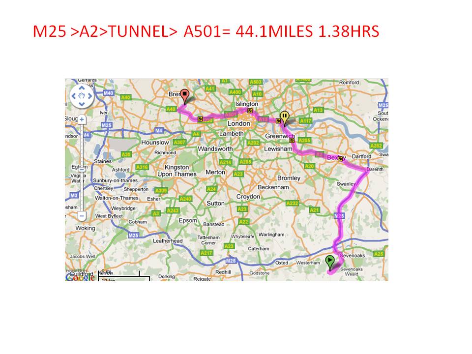 but I went M25 > A2 > blackwall tunnel > A12 > A406