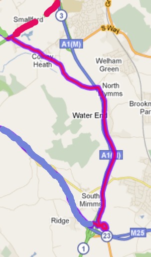 From South Mimms ~ north alongside the A1 for a couple of quick miles (few hidden turnings to wake us all up).