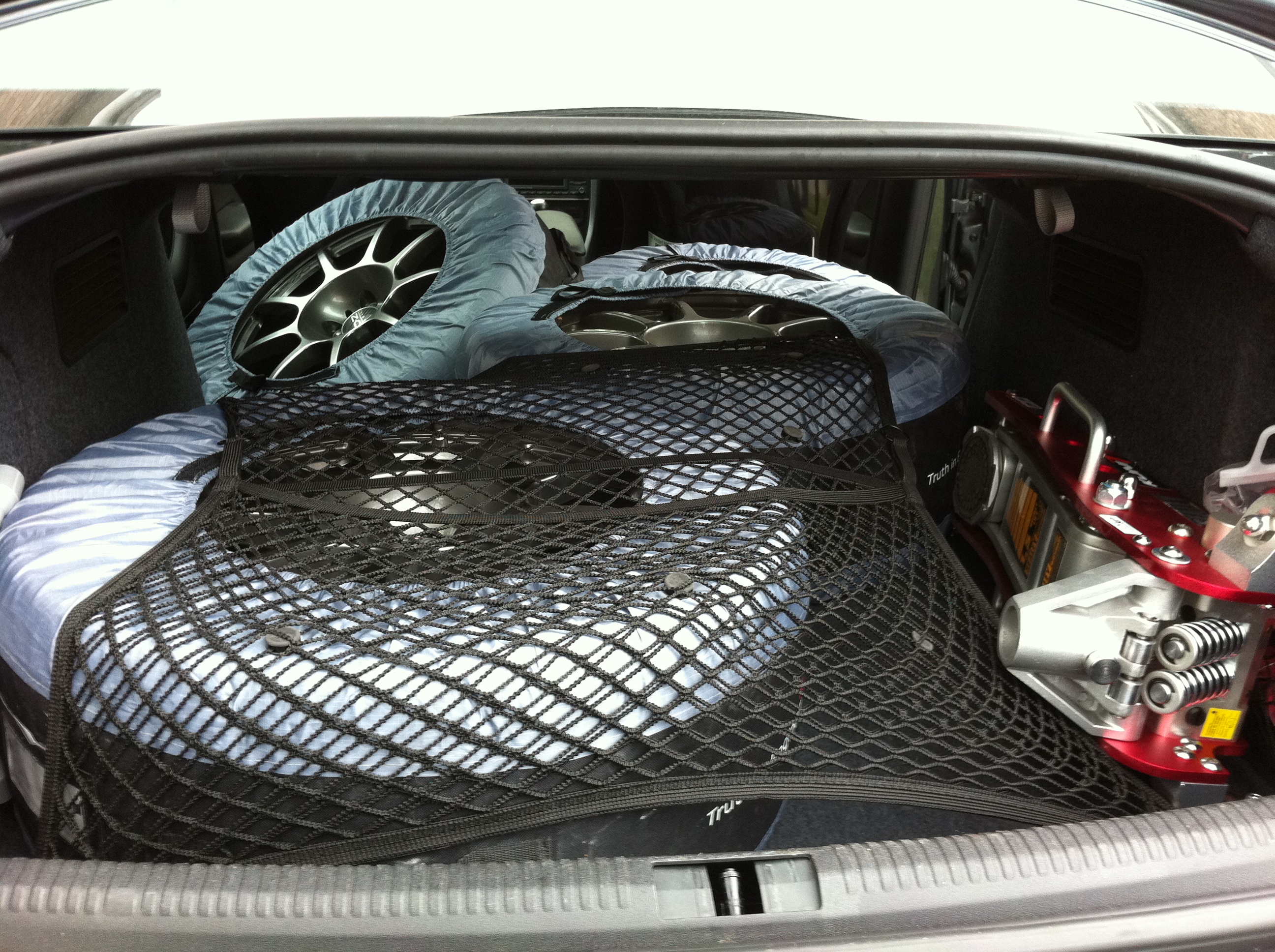 Car packed, got the 4 track day wheels in (just about) trolley jack and other supplies.