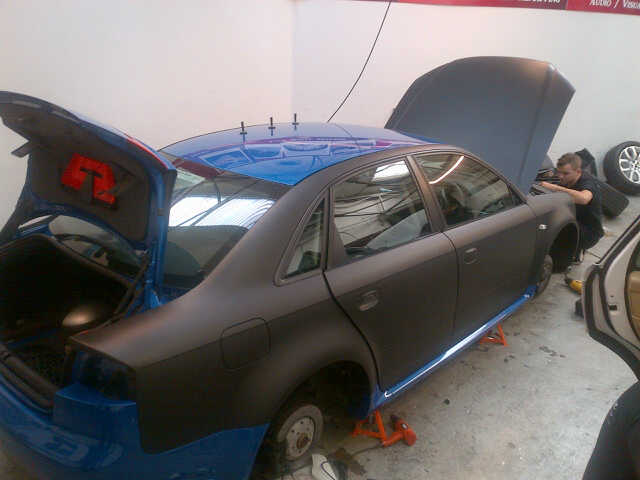 So i picked my car up and drove straight in to London. It had all been arranged and it would take 3 days. The menu: Matt Black vinyl wrap including door shuts, gloss black alloys, smoked rear lights, and black out the Audi rings front and back. I didnt take up the option of getting the windows tinted, i thought if i change my mind i can always get this done later.