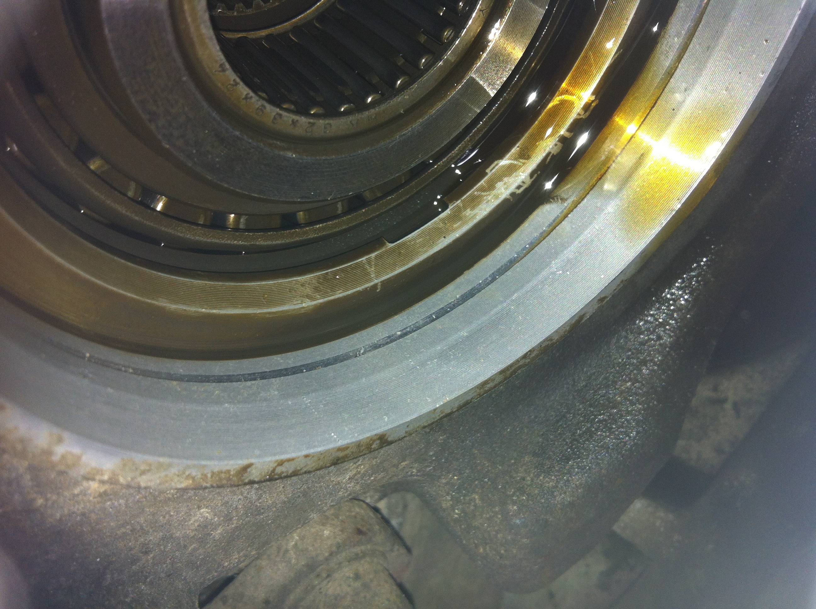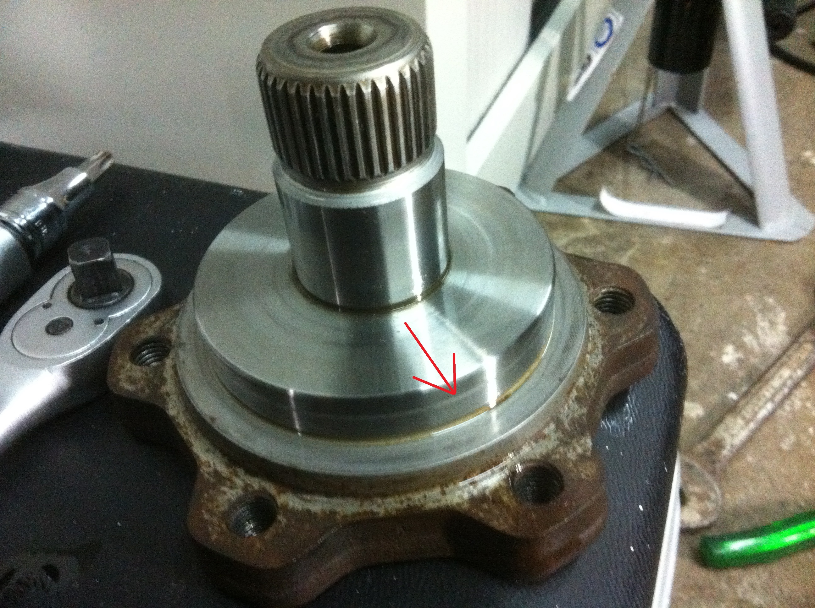 ...i cant feel there is, probably got polished after friction with the seal part. like on the bearingside on the flange, you can see where it touched the bearings side, but cant feel it (green Arrow)...