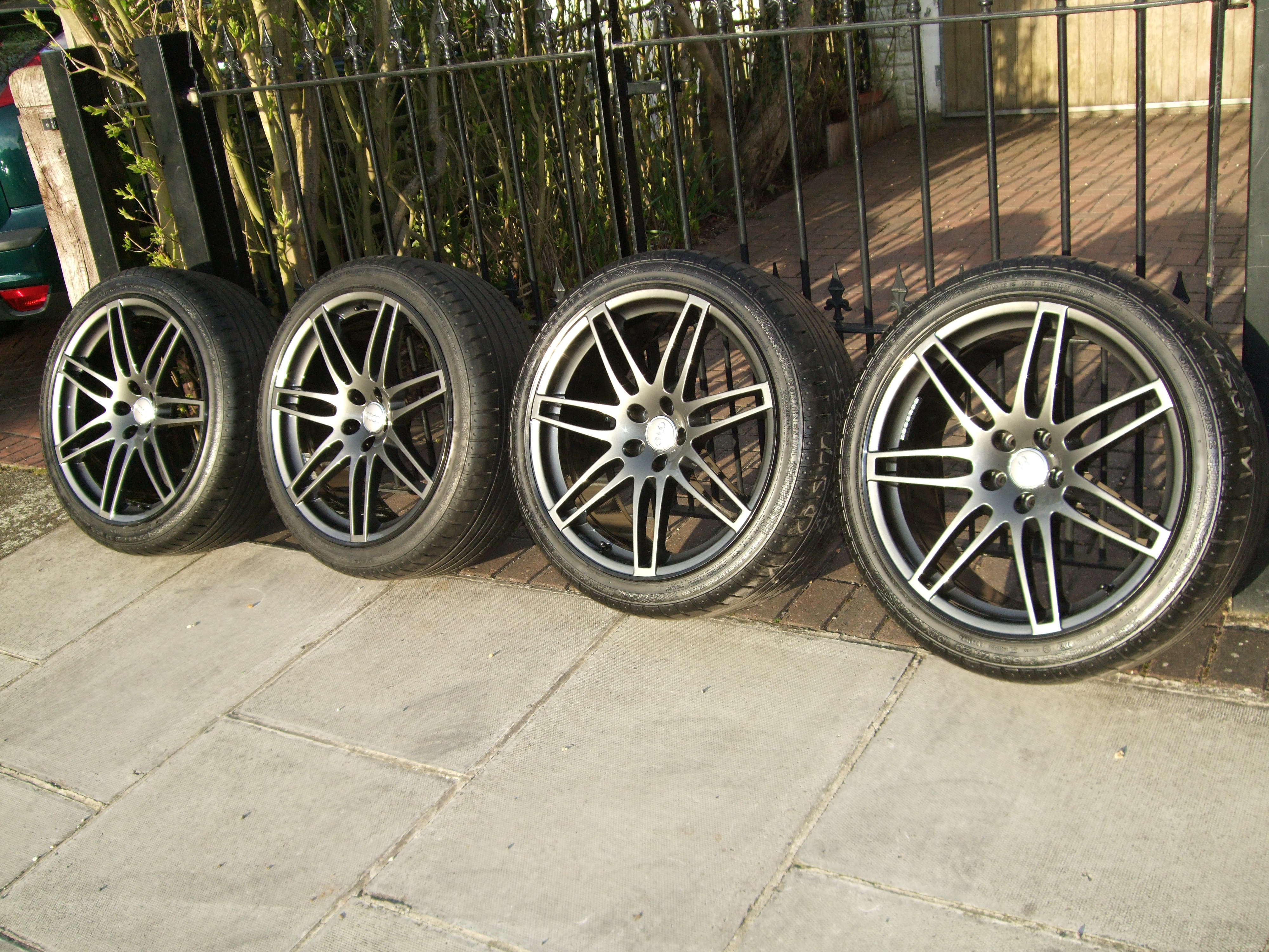 I'm probably ready to move on my spare set of 7 spokers if anyone is interested, all of which have been refurbed by QST and finished in Titan gloss (outside face and inside rim) and look amazing. Continental 275/35/ZR20 102Y all round. In tip top condition with at least 5 mm rubber remaining. Not on a vehicle so can be collected whenever. Not sure what they are worth but how does £1,200 OVNO sound?