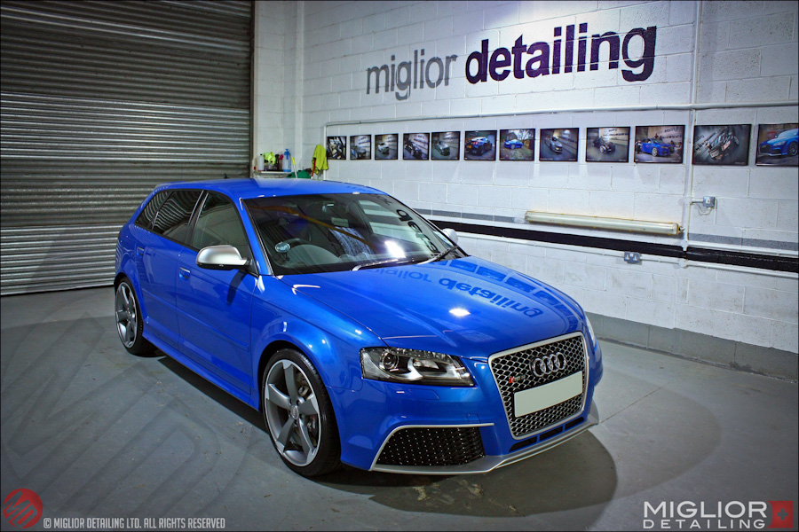 I recently had the pleasure of detailing a friend of mines Cornflower Blue RS3{the only one in the country} its a strange colour heres a few photos i took afterwards of it in his garage and some that i took on a day out at the Powerstation of Tewkesbury when we went to a dyno day .
