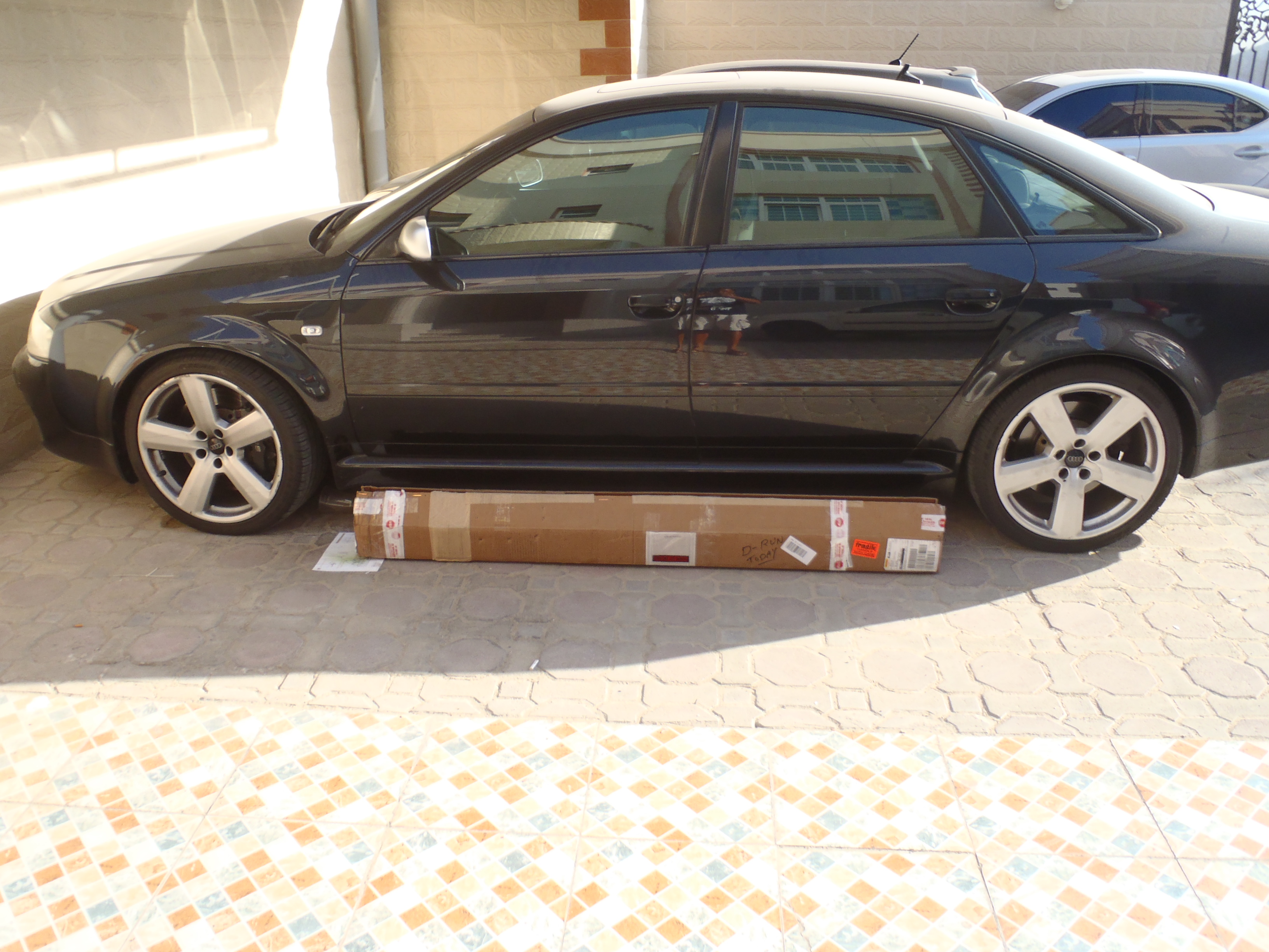 I'll probably get booed off the forum but what the hell I always wanted one and it was the same price with shipping for a brand new one from audi. Here are some pics of it once installed I'll let you folks know how it goes. It shows 5kg on the scale but it's off by two to the negative so I'm going to say the total weight is 7kg. I'm pretty excited yes bam bam this is the complete unknown. Ahhh what we do for the sake of science right?