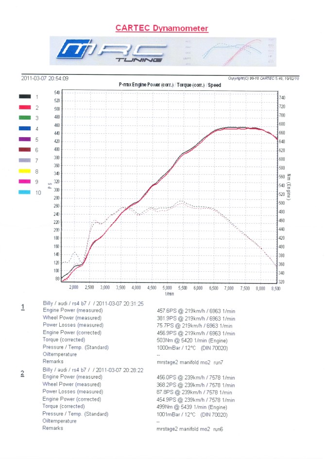 Stage 2 custom MRC remap dynoed at 457PS and 503NM