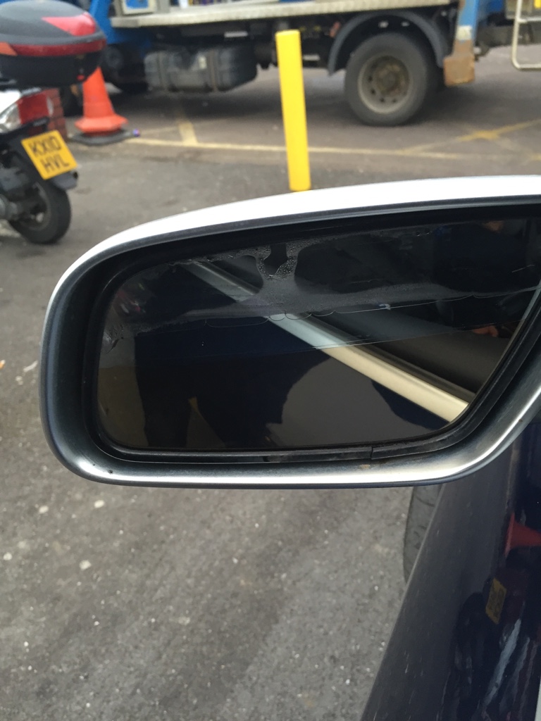 Agreed, mine looked the same when I bought it. Sourced blue tint heated glass and stick on back plates from Ebay for less than £20 delivered. Sod self-dimming, you shouldn't have other road users that close behind you anyway... it's an RS.