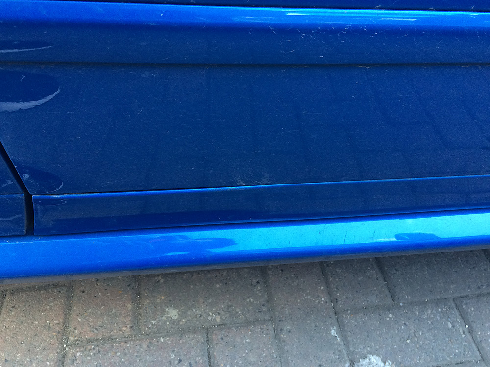 Before, not massively noticeable but once you see it.....and it will only get worse as water continues to get in. You can feel the difference, the side near the door pillar is at least 5mm proud whereas the hinge side of the trim is flush with the door: Trim after unscrewing, full of dirt. Seems to have come apart quite a lot more than you would think looking at it while attached to the car. This seems to be because there's a recess behind where the trim fits on the door so you only see the distortion on the fascia, not on the backing. I cleaned out all the crap best I could using a small flathead screwdriver, a nail and a stanley knife. All of the rusted metal came out. Then used some cotton buds to clean the inside surfaces. Clean: Biggest problem I had was deciding what glue to use. There seems to be two ways to glue it back together. Where the trim has come apart at the very top, it requires a lot of force to close the gap and even then it's impossible to completely get it back to how it was. I'm not sure it's even necessary to completely close this gap as the recess in the door will allow it. If you clamp the trim as below, it will straighten the trim but the top gap remains, the point of contact is further inside the trim. I considering using one of them super glue with powders like QBond or supafix AP4, I think they'd work best if you left the gap at the top, as there's virtually no working time with them you'd have to clamp up, then fill the gap with powder and glue: I decided instead to completely close the gap at the top, so that mean putting all the pressure at the very top edge of the trim. Had to make a jig for the clamps using some 2x1" timber and a 7x7mm piece of steel(b&q), the steel fits perfectly in the recess at the top edge of the trim: All masked up, dry run before gluing. Trim virtually back to where it was, just 1mm or so off laying flush. Requires a lot of pressure to close this gap so glue needs to be strong. Opened up the gap again, filled with glue, clamped, cleaned off, removed tape. I decided to use Stixall(clear), it's similar to tiger seal, sikaflex. I know how strong it is, allows more working time, easier to wipe off excess/spills and is also a sealant. Only downside is it takes 24hours to fully cure so I had a day or two driving around with no door trims on: Clamps removed: I also noticed on one of my trims, a little section of the underside had come apart swell, I just sealed this up: Done, don't notice it at all now. It's not 100% perfect, the plastic and steel backing have obviously been distorted for a very long time and as such you'll never get them 100% true again, as well as that the metal backing of the plastic is no longer there.... but it's 99% and you'd never notice it.