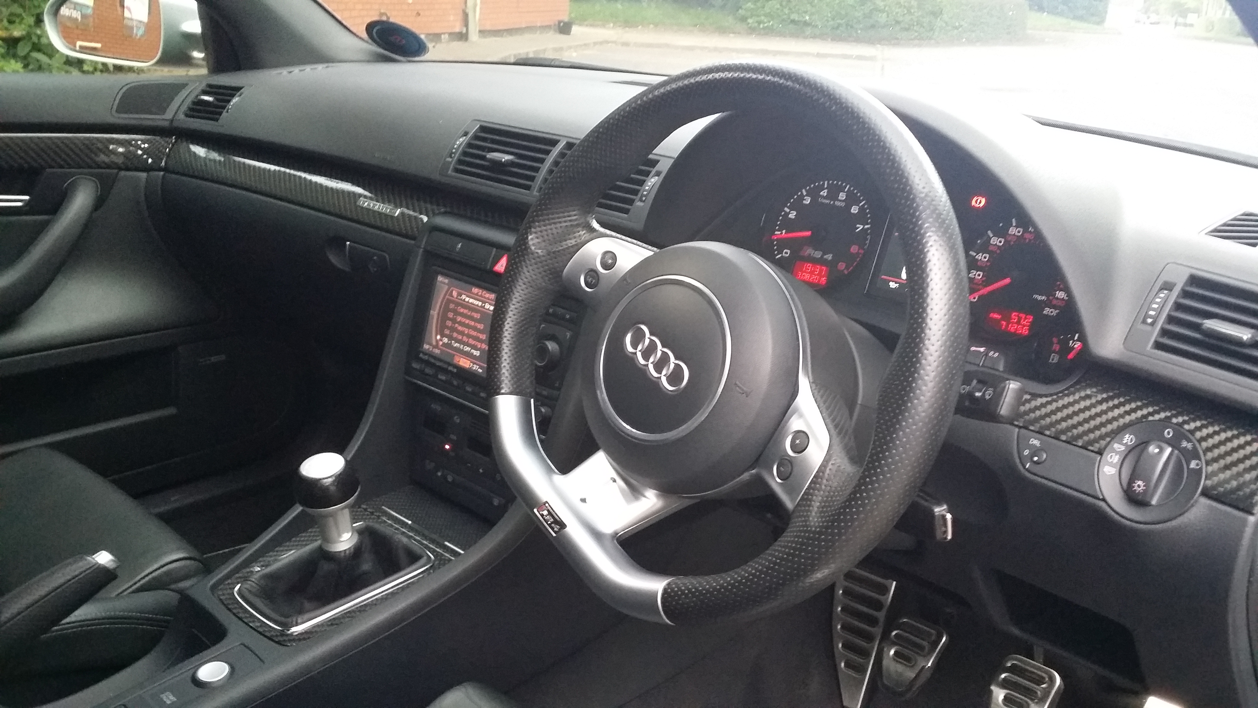 RS4 B7 Saloon, Phantom Black with SS+. LED's all inside & out with Dectane LED tailights. deflap, MRC Stage 2, Carbon Clean, no pre-cats, Blueflame non res cat back exhaust, AP Racing Discs, Titanium alloys and mirrors, 438PS