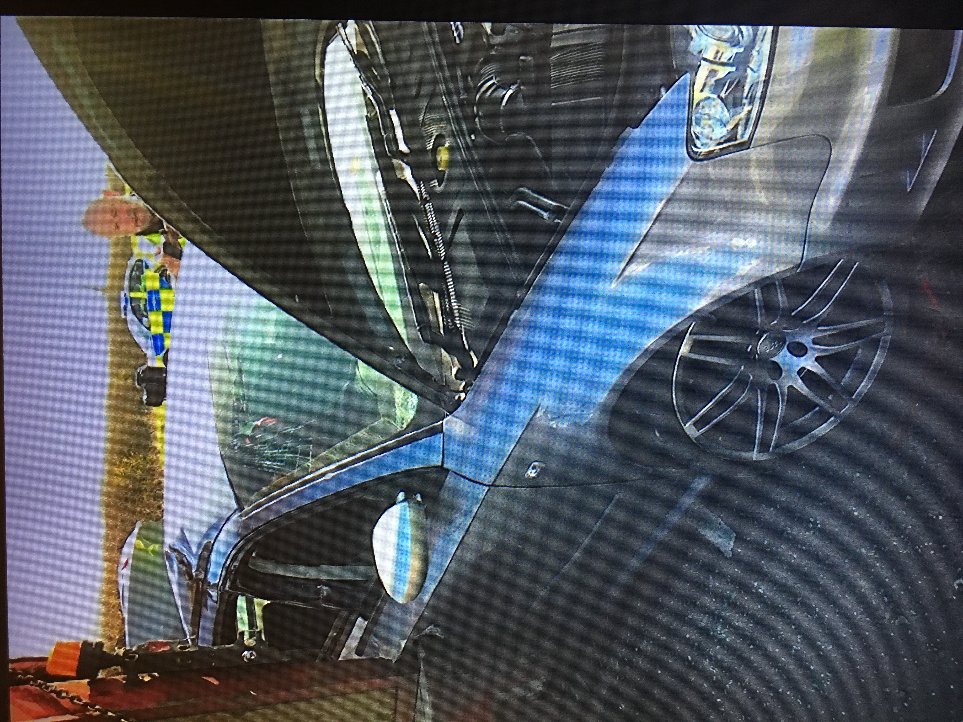 And also if you look at the roof its pushed up in the middle. The rear quarter is pushed forward about 6inches. Basically the car ended up like a banana. On the engineers report it listed every part to repair it and the total cost including a new shell was £29,000.