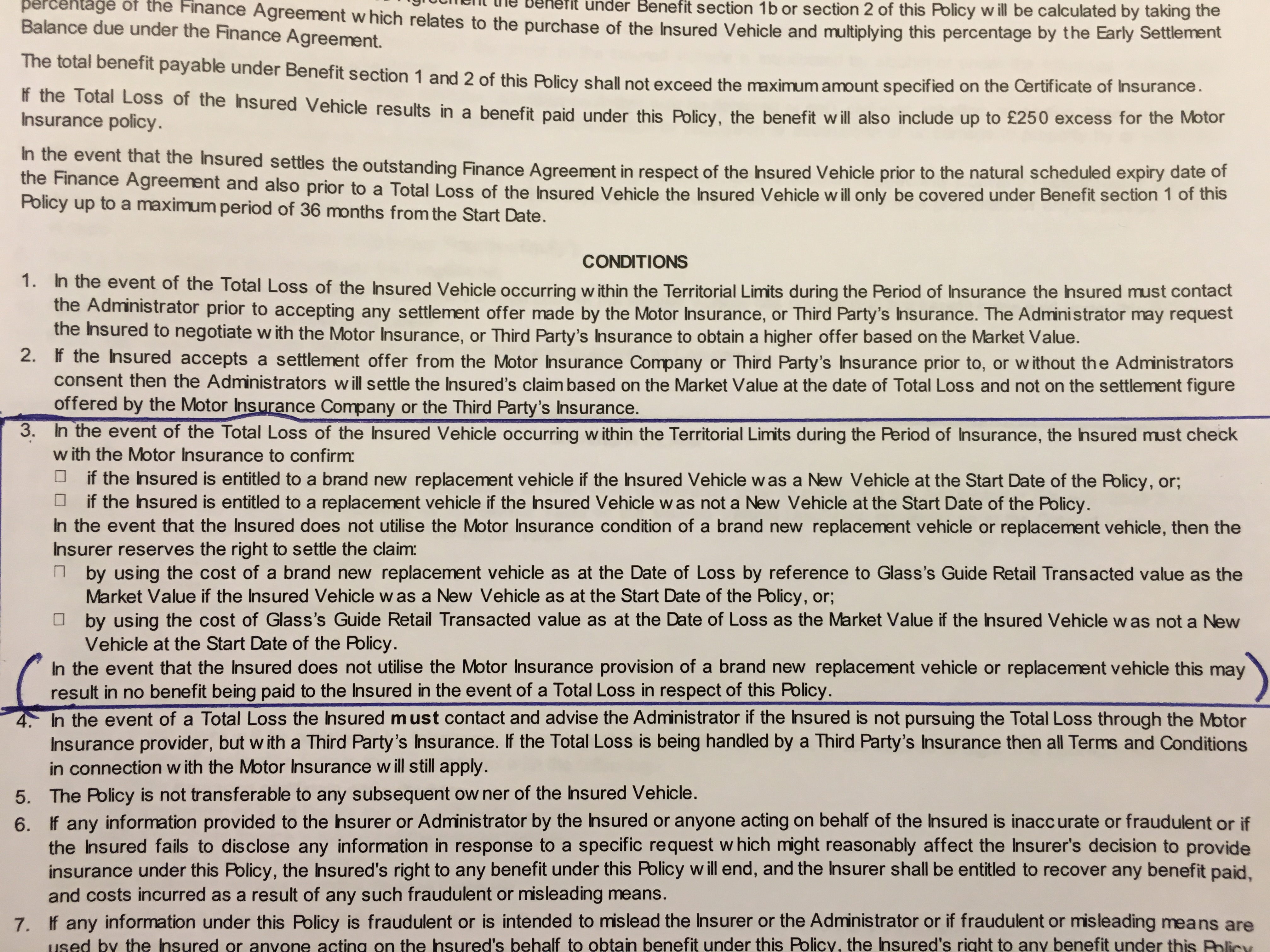 If you read the last 3 paragraphs the first para and last para is a contradiction. 1 says they will use brand new cost to offset. Then the last para says if I don't except it MAY!!! Result in no benefit being paid. It's a clause that they have used to bum jam me.