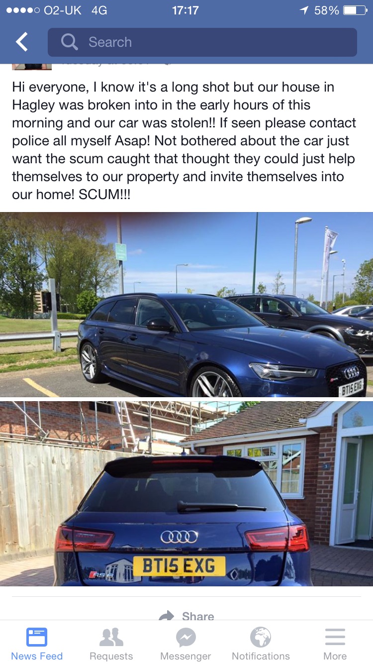 It's a good point. I wonder if all the stolen ones are linked by dealer rather than by where they live.Paul789 wrote:C****s. Which dealer did you use Eddie?